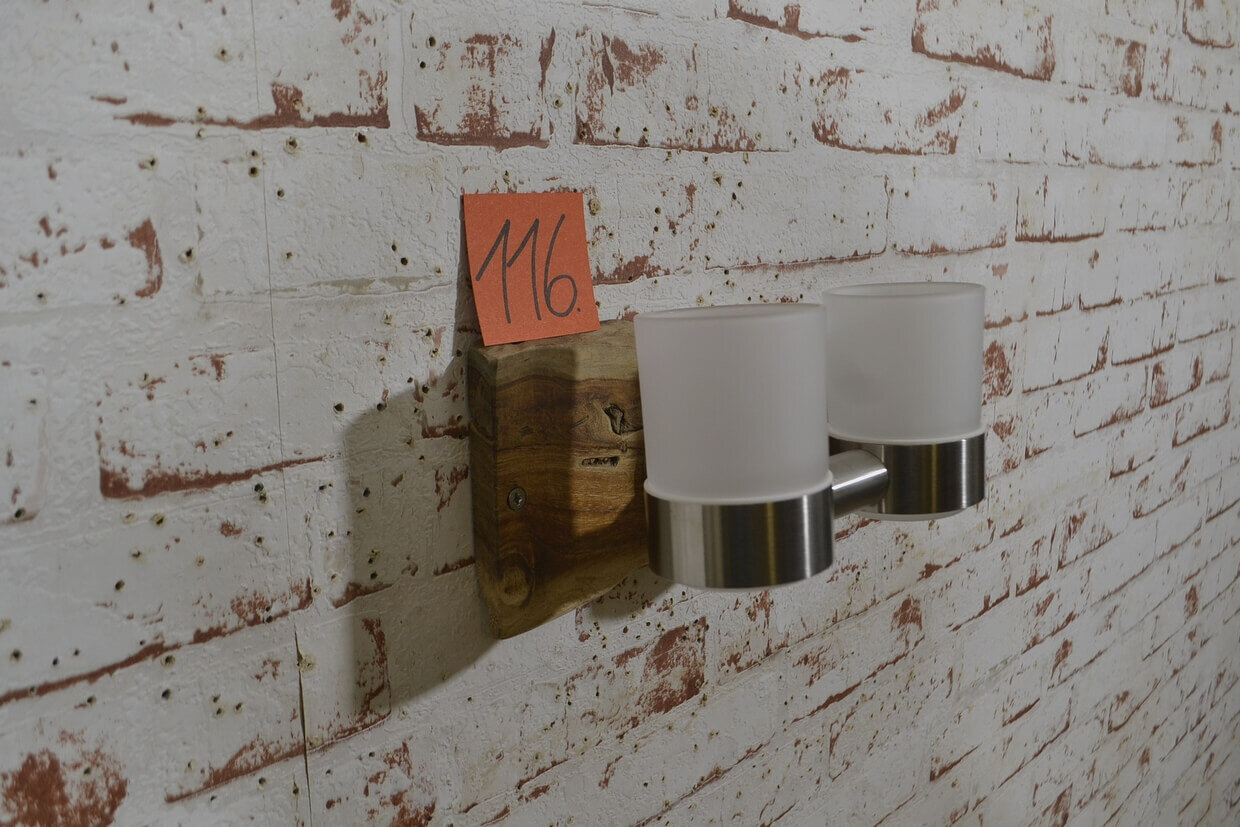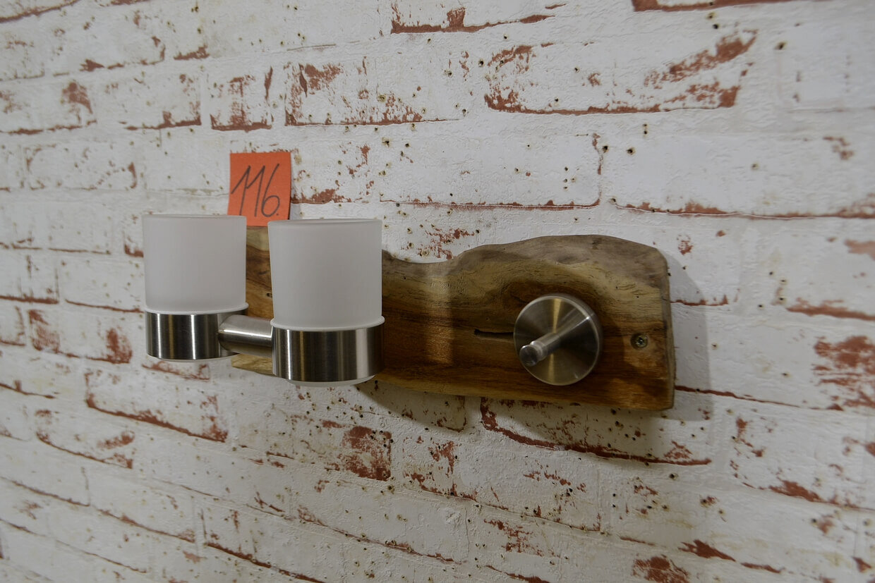 Das Holz der Badgarnituren kann Unebenheiten, Einkerbungen, ehemalige Wurmlöcher und Splintholz (Weißholz) aufweisen.