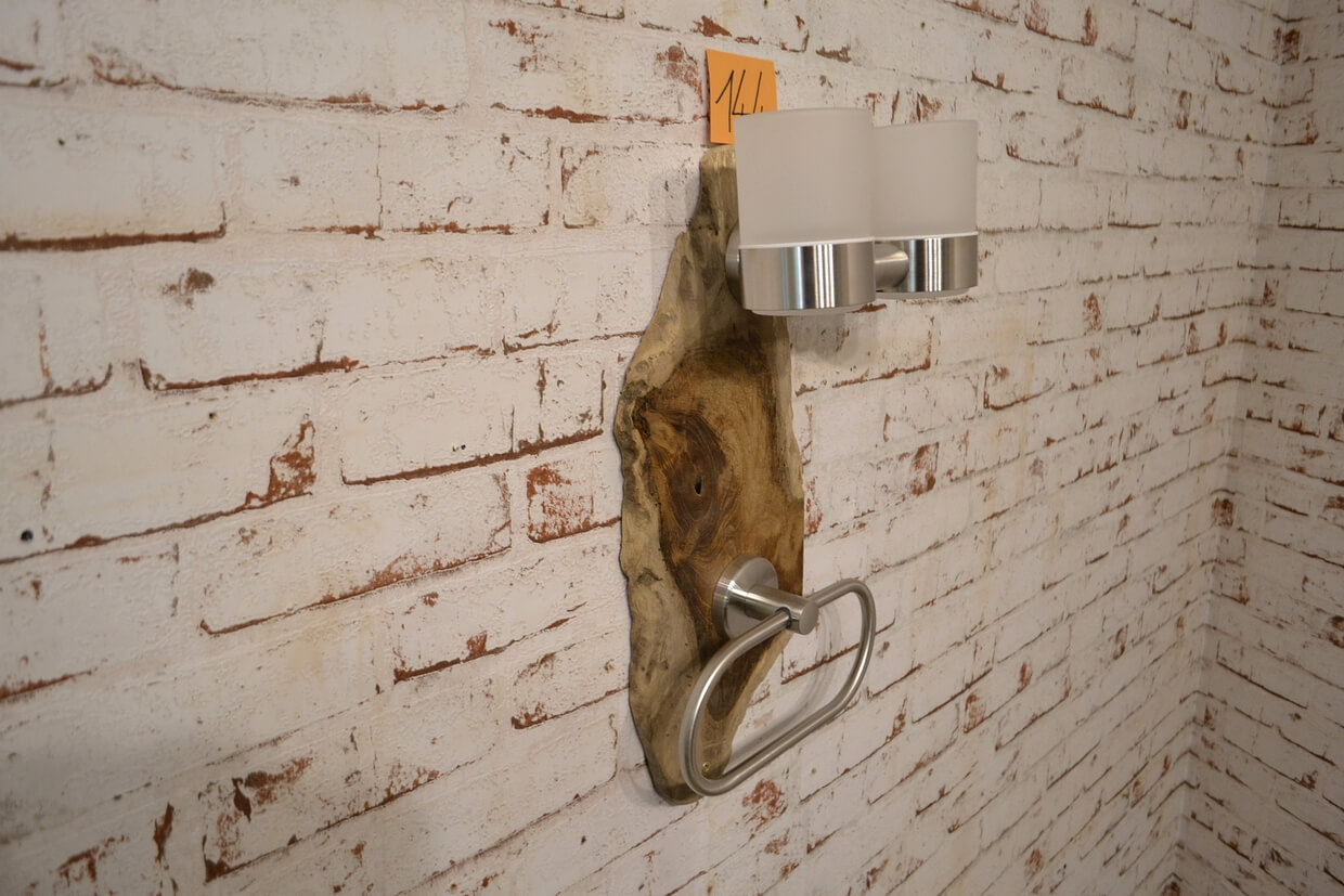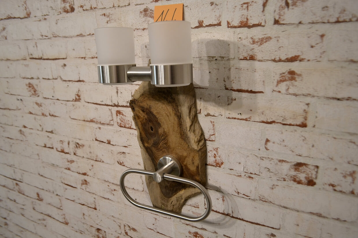 Das Holz der Badgarnituren kann Unebenheiten, Einkerbungen, ehemalige Wurmlöcher und Splintholz (Weißholz) aufweisen.