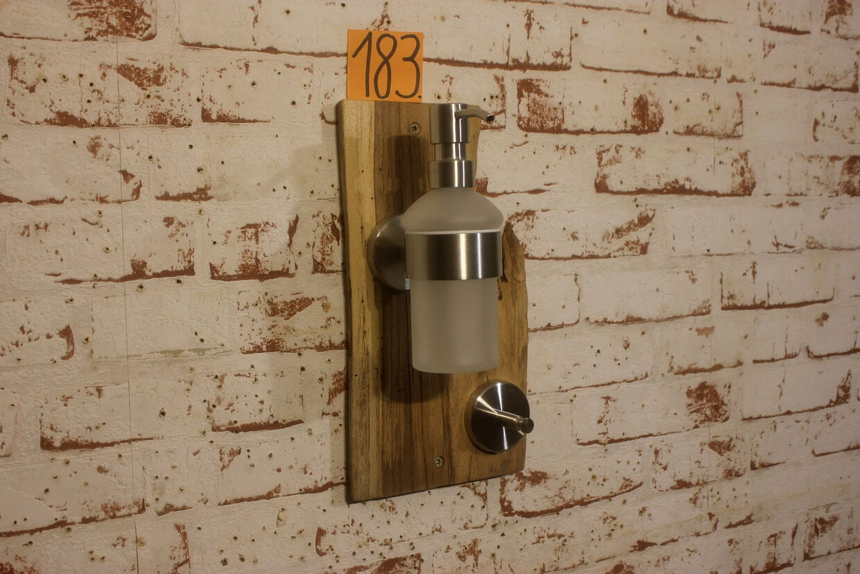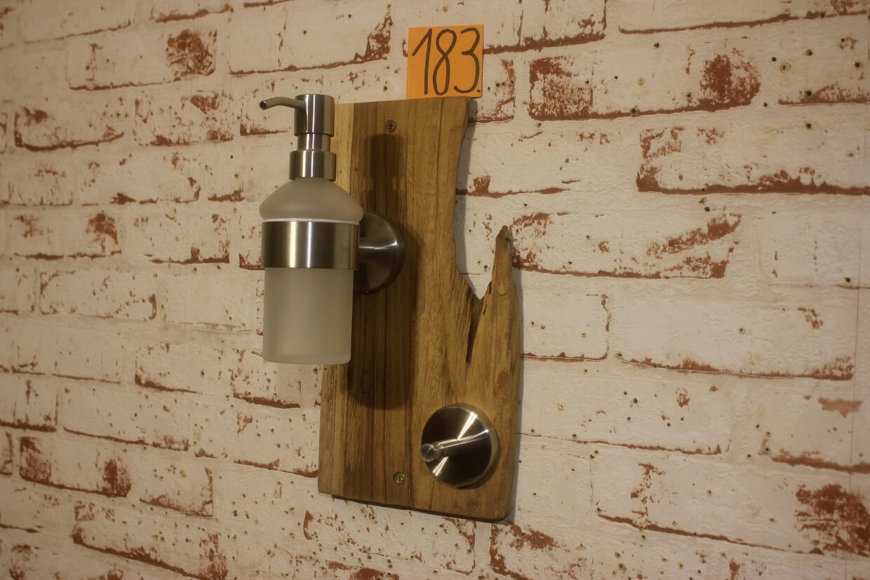 Das Holz der Badgarnituren kann Unebenheiten, Einkerbungen, ehemalige Wurmlöcher und Splintholz (Weißholz) aufweisen.