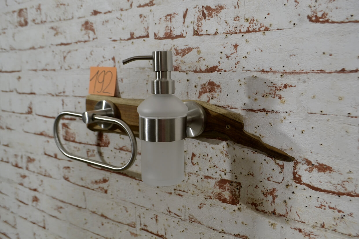 Das Holz der Badgarnituren kann Unebenheiten, Einkerbungen, ehemalige Wurmlöcher und Splintholz (Weißholz) aufweisen.