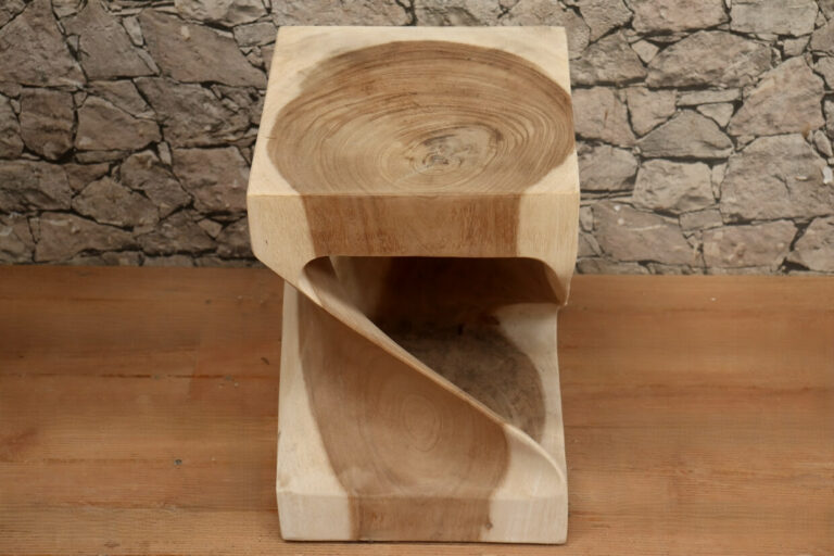 Durch ihr einzigartiges Aussehen und die markante Holzmaserung wird jede Bank und jeder Hocker zu einem unverwechselbaren Unikat.