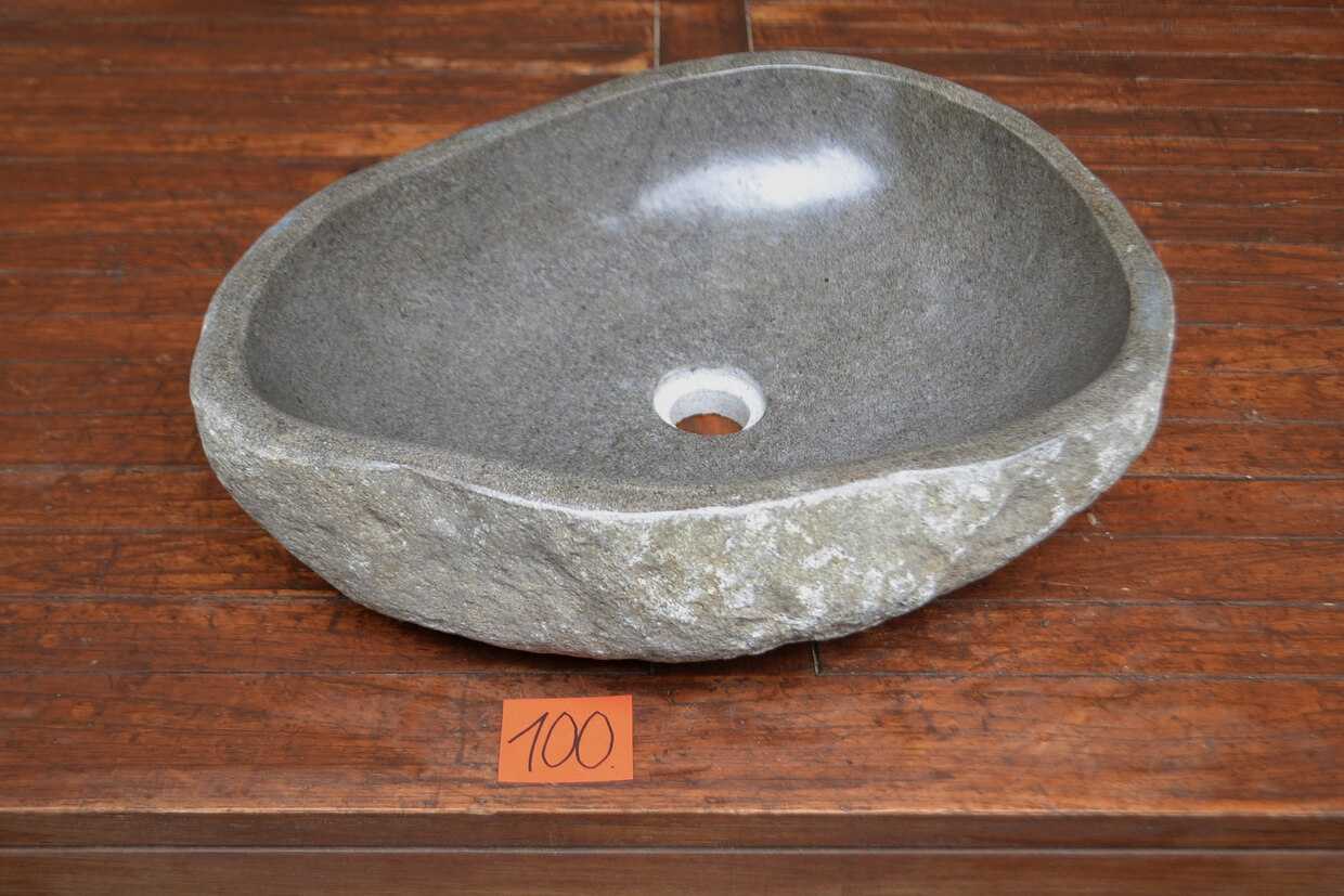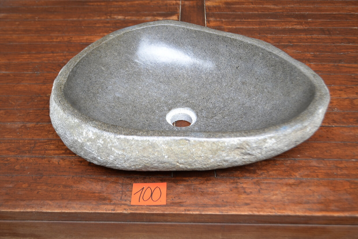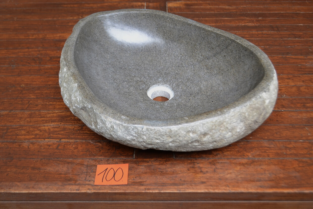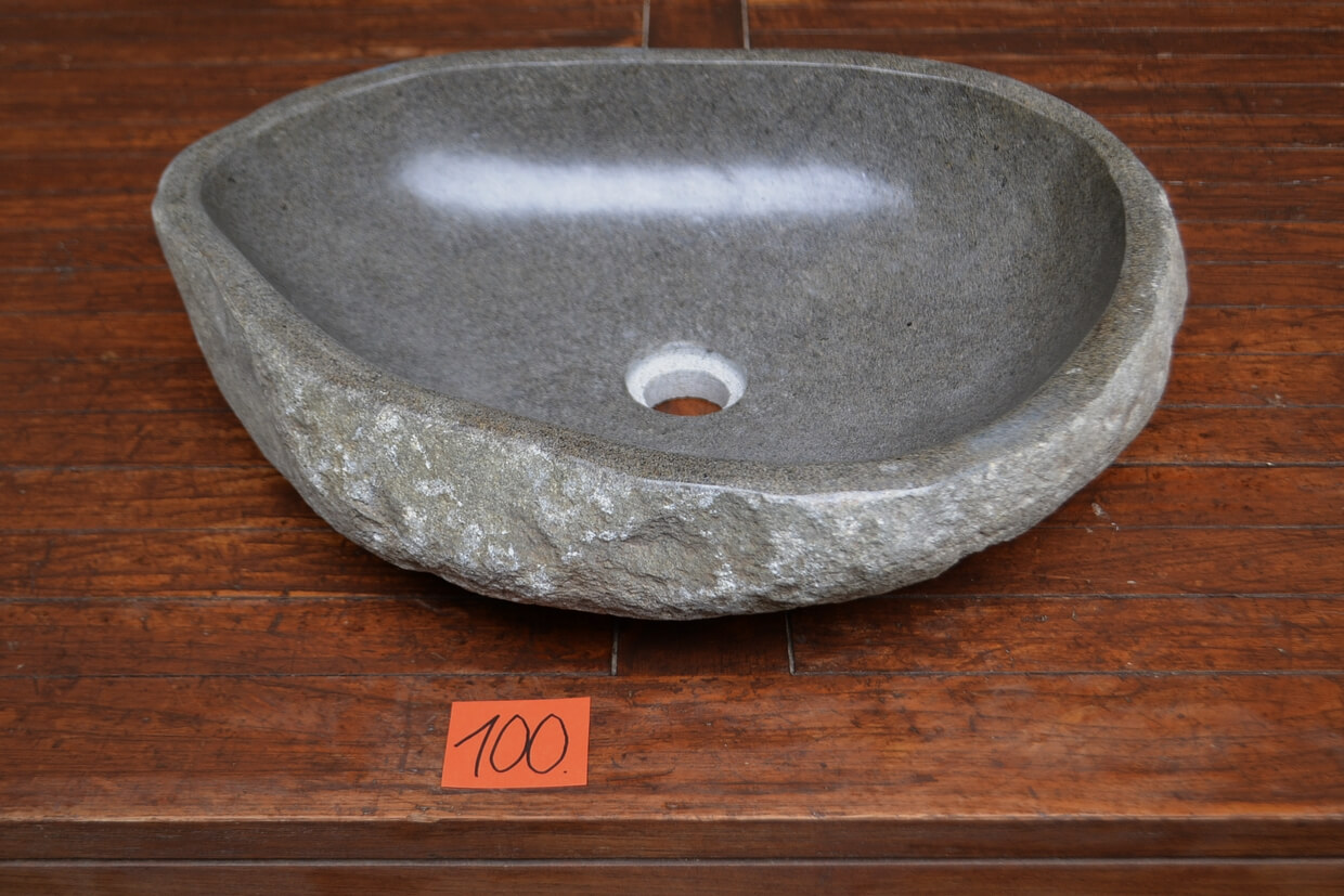 Je nach Größe und Dichte wiegen die Flussstein-Waschbecken zwischen 15 kg und 40 kg.