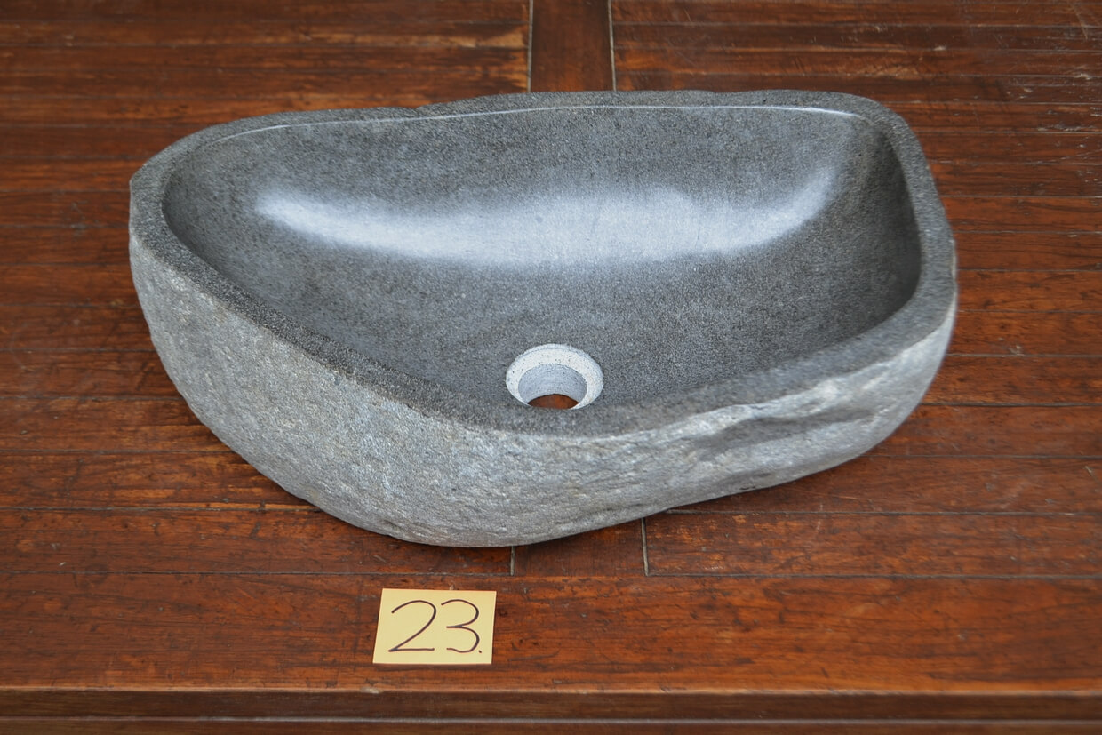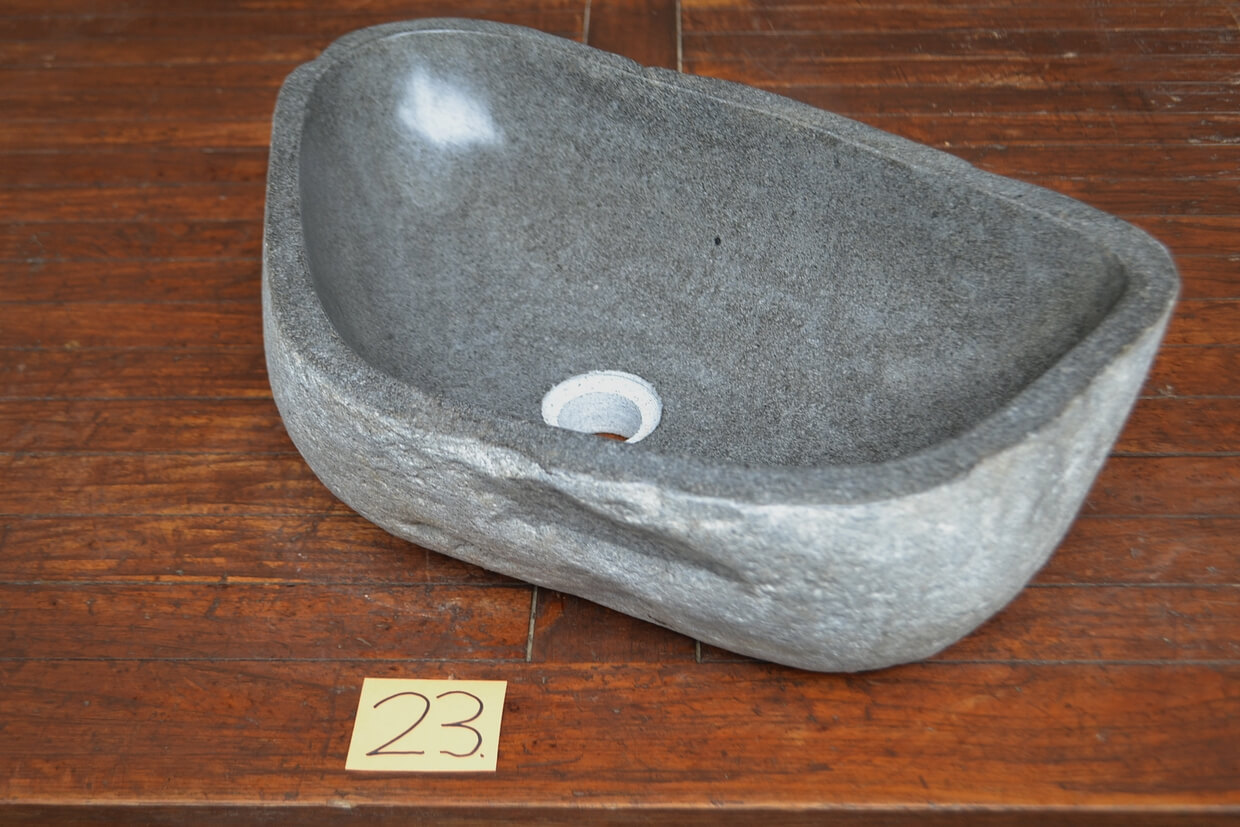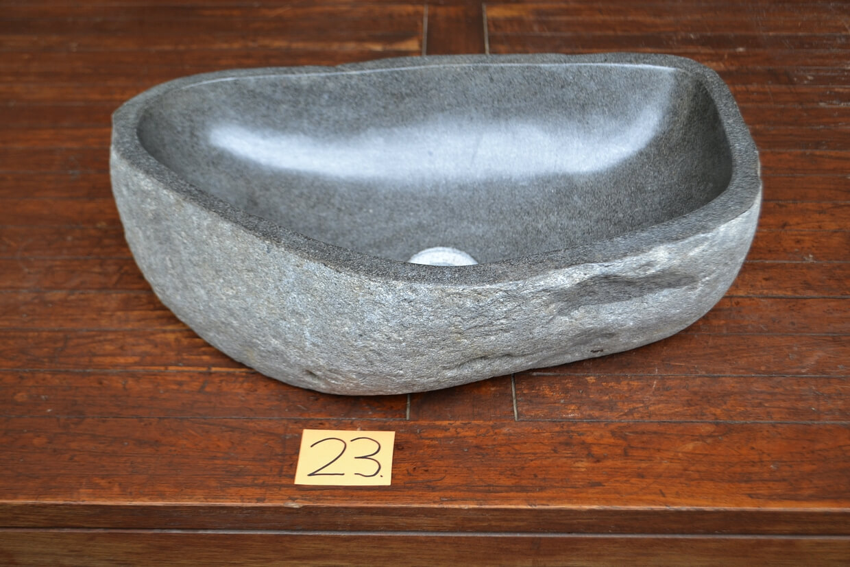 Je nach Größe und Dichte wiegen die Flussstein-Waschbecken zwischen 15 kg und 40 kg.