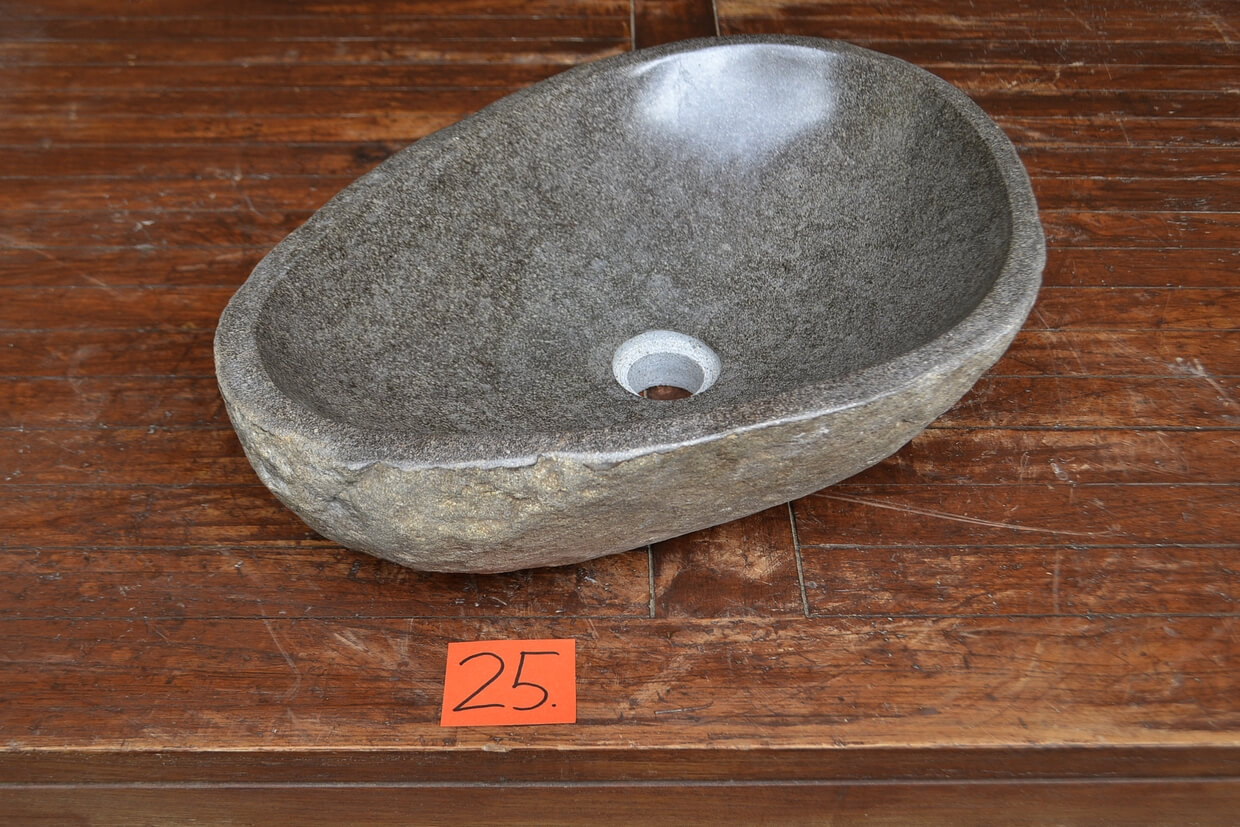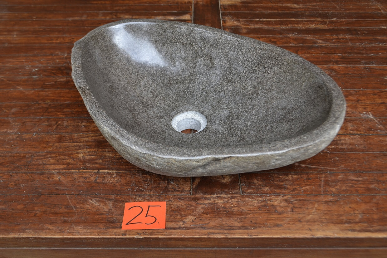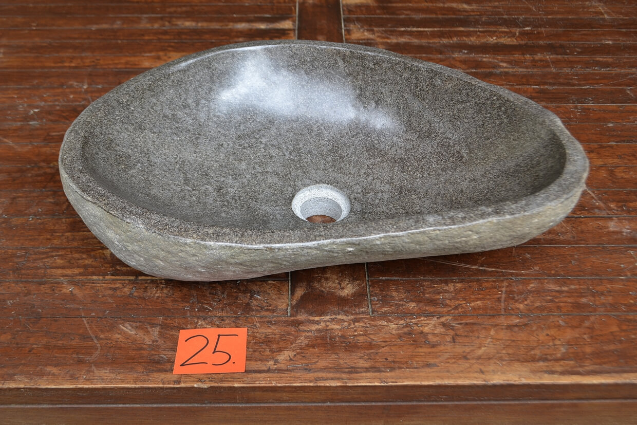 Je nach Größe und Dichte wiegen die Flussstein-Waschbecken zwischen 15 kg und 40 kg.