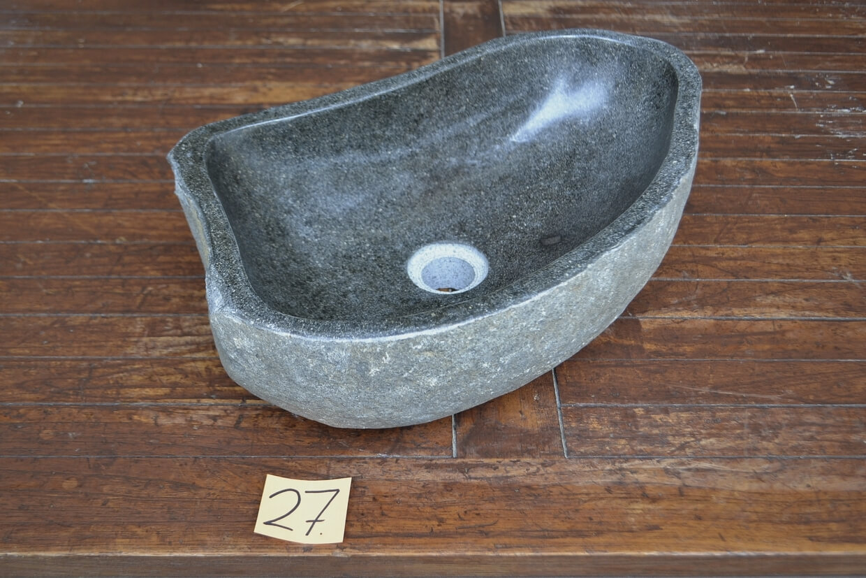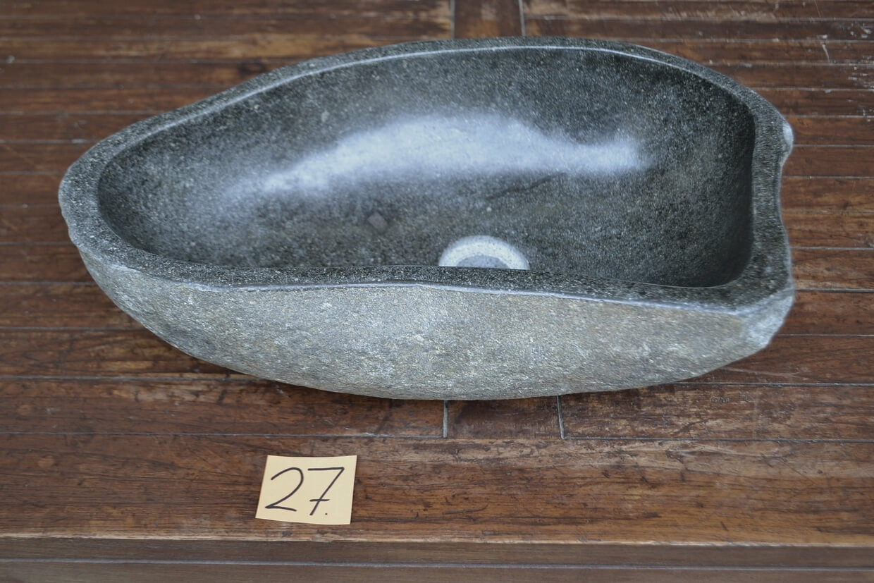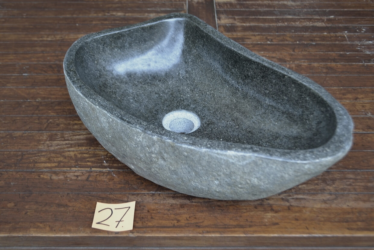 Je nach Größe und Dichte wiegen die Flussstein-Waschbecken zwischen 15 kg und 40 kg.