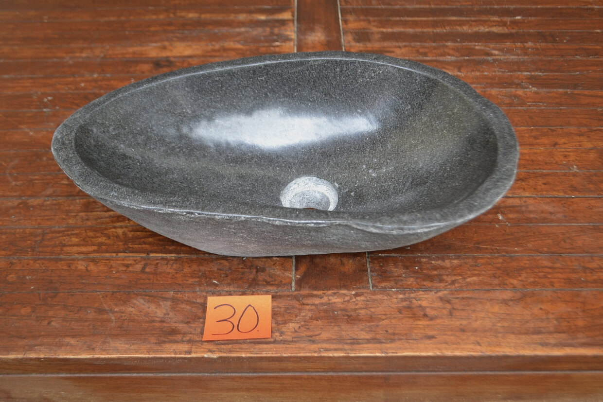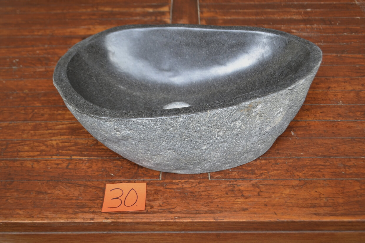 Je nach Größe und Dichte wiegen die Flussstein-Waschbecken zwischen 15 kg und 40 kg.