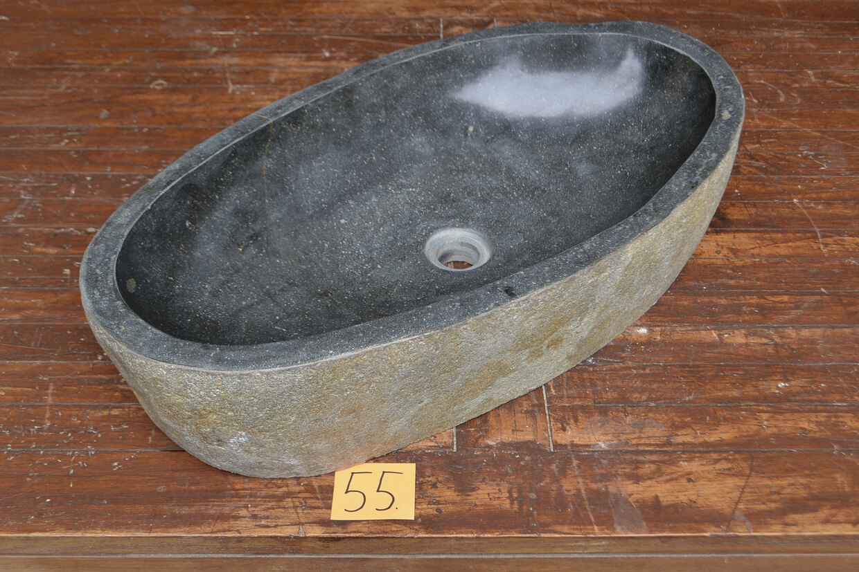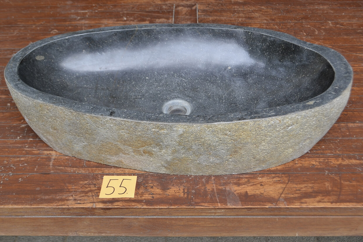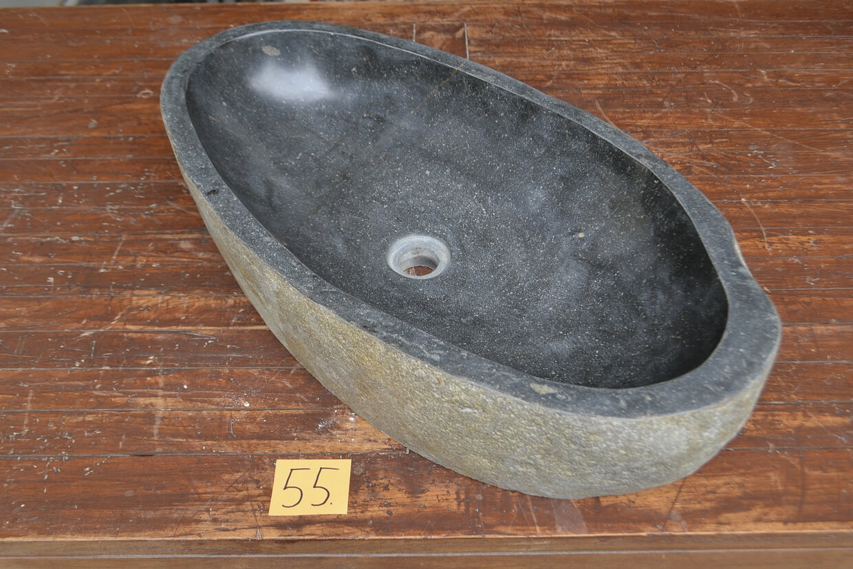 Je nach Größe und Dichte wiegen die Flussstein-Waschbecken zwischen 15 kg und 40 kg.