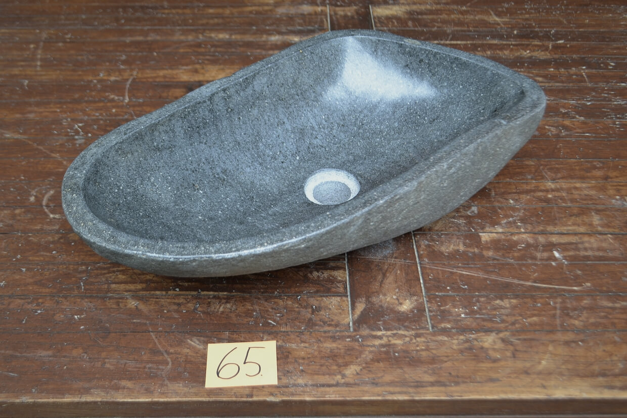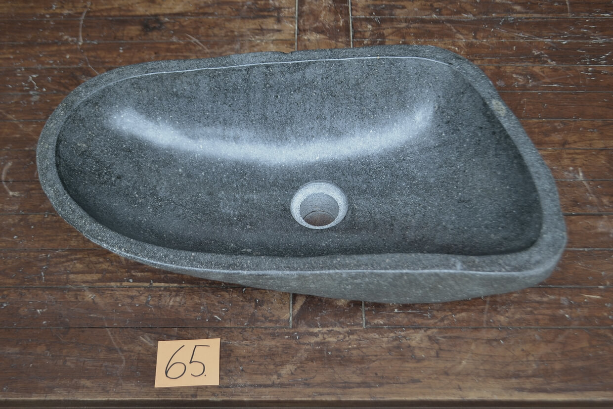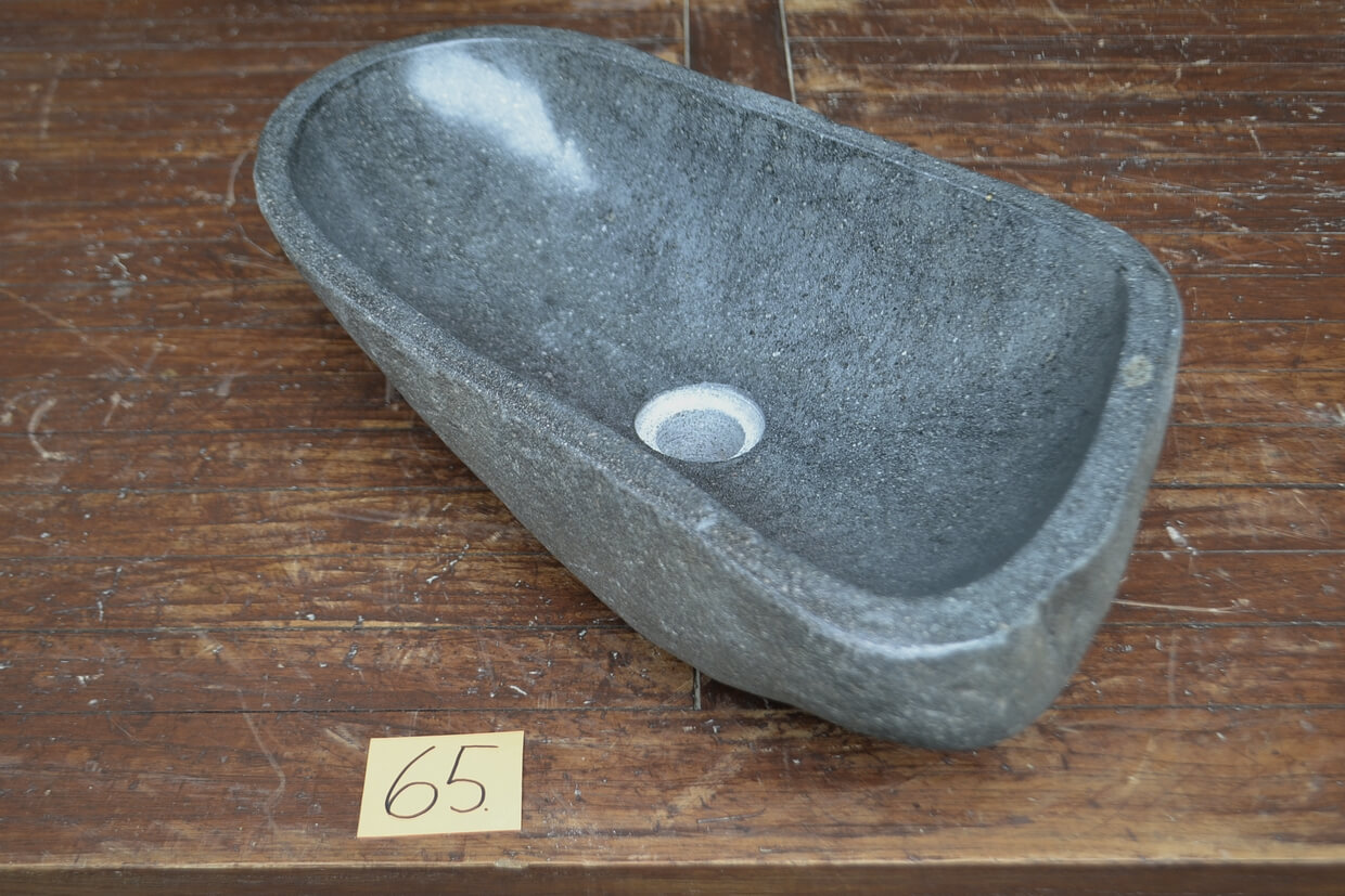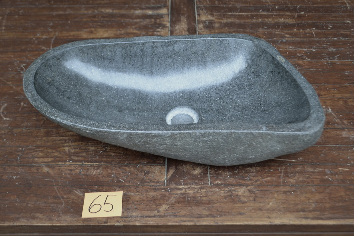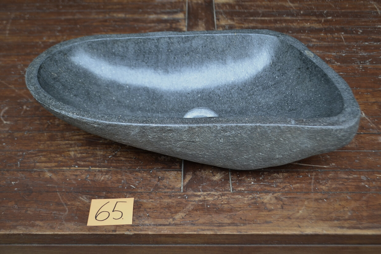 Je nach Größe und Dichte wiegen die Flussstein-Waschbecken zwischen 15 kg und 40 kg.