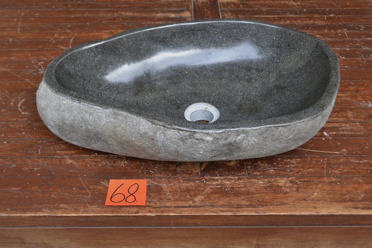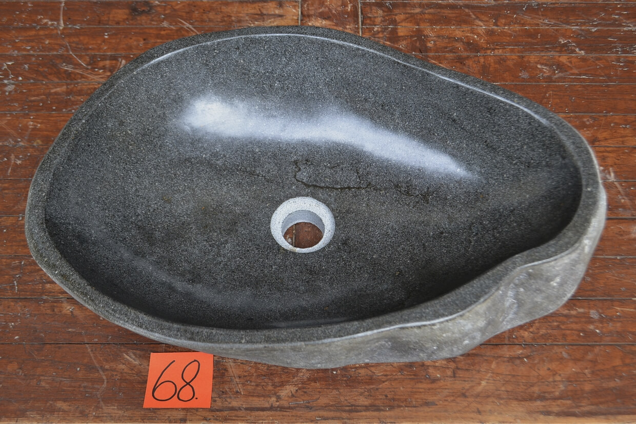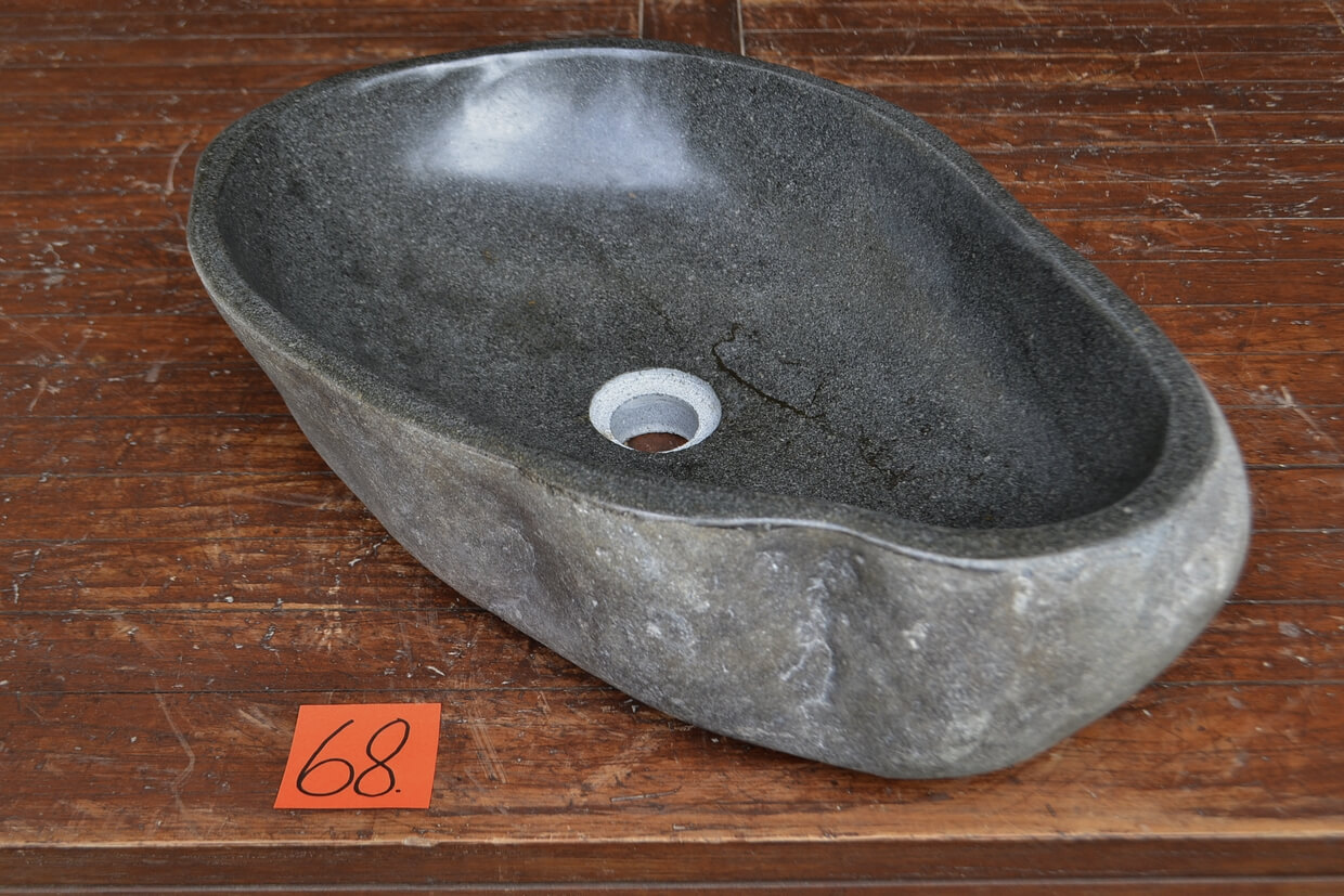 Je nach Größe und Dichte wiegen die Flussstein-Waschbecken zwischen 15 kg und 40 kg.