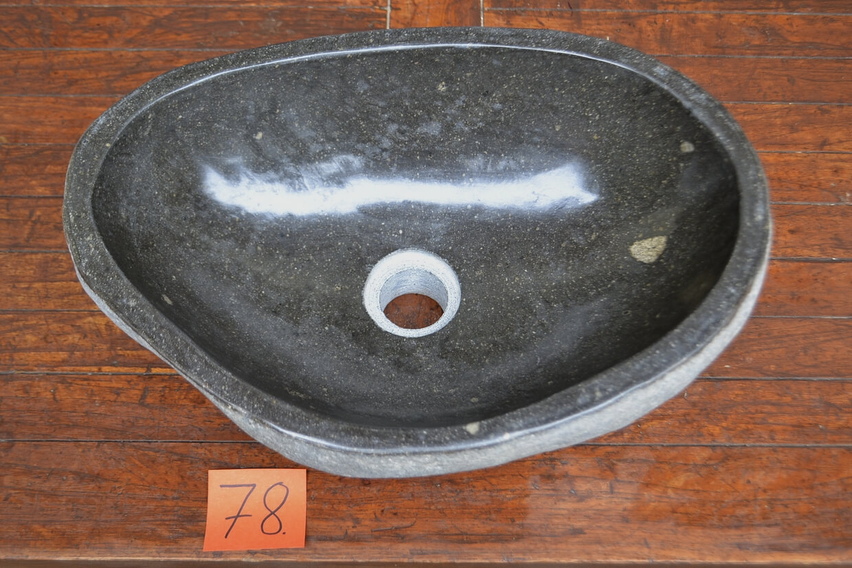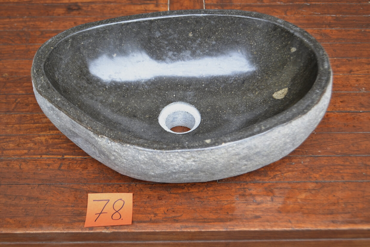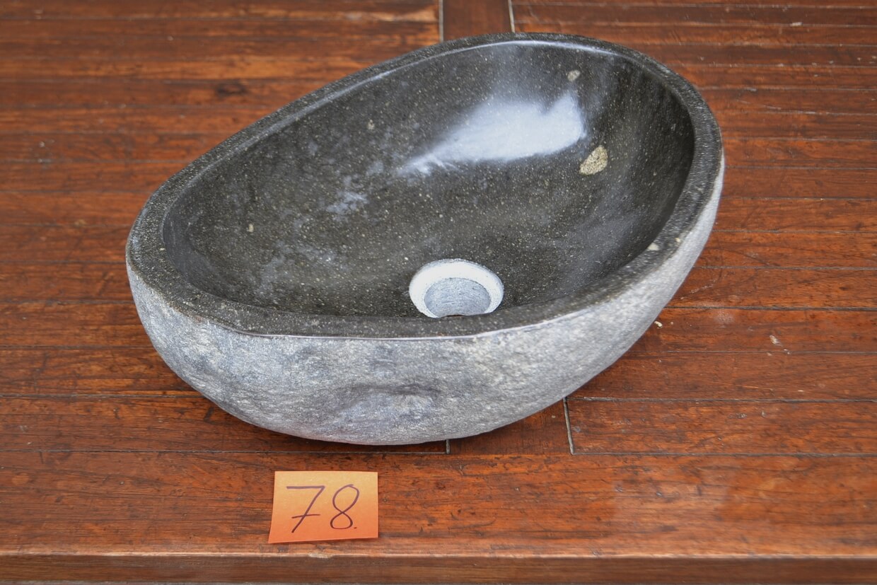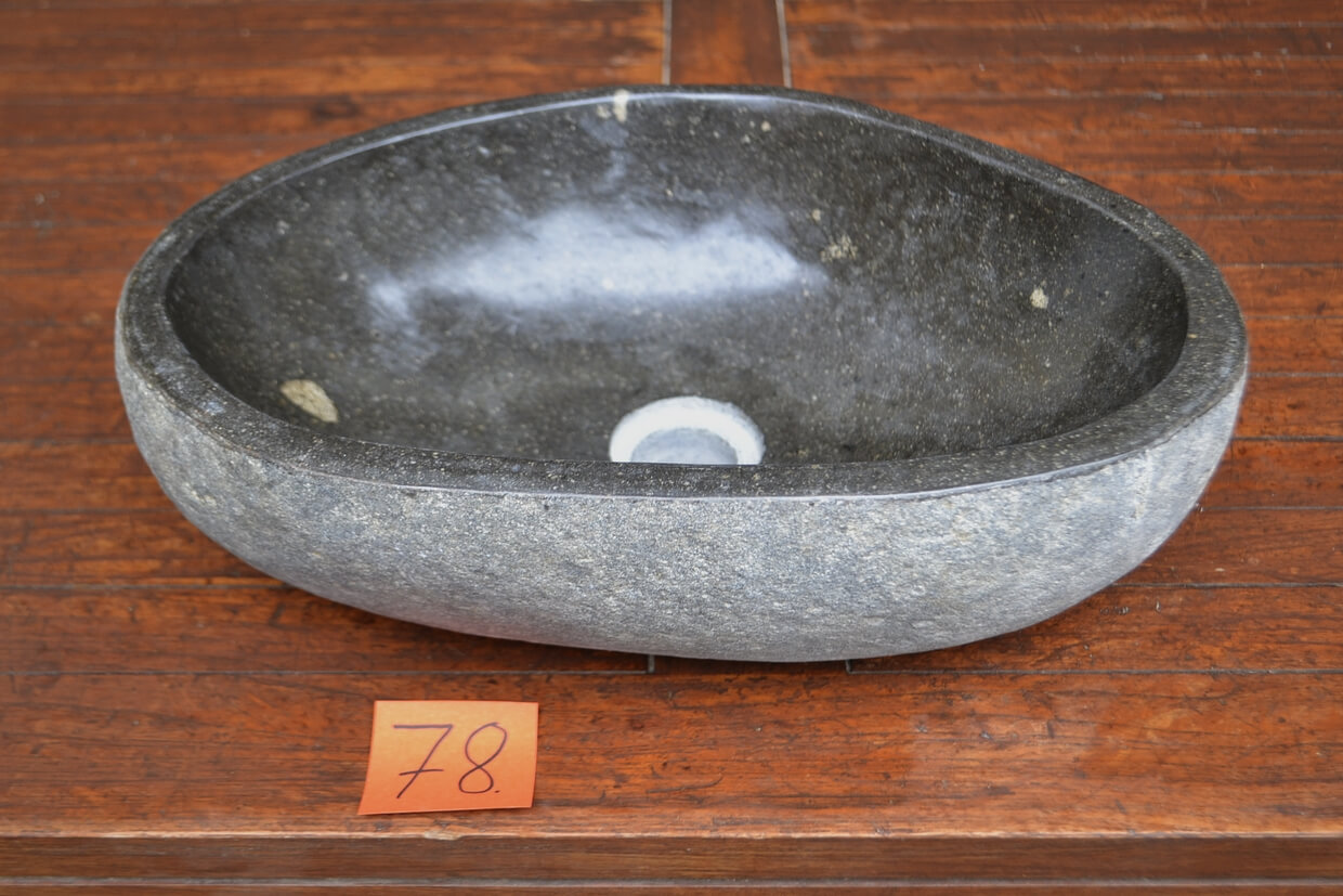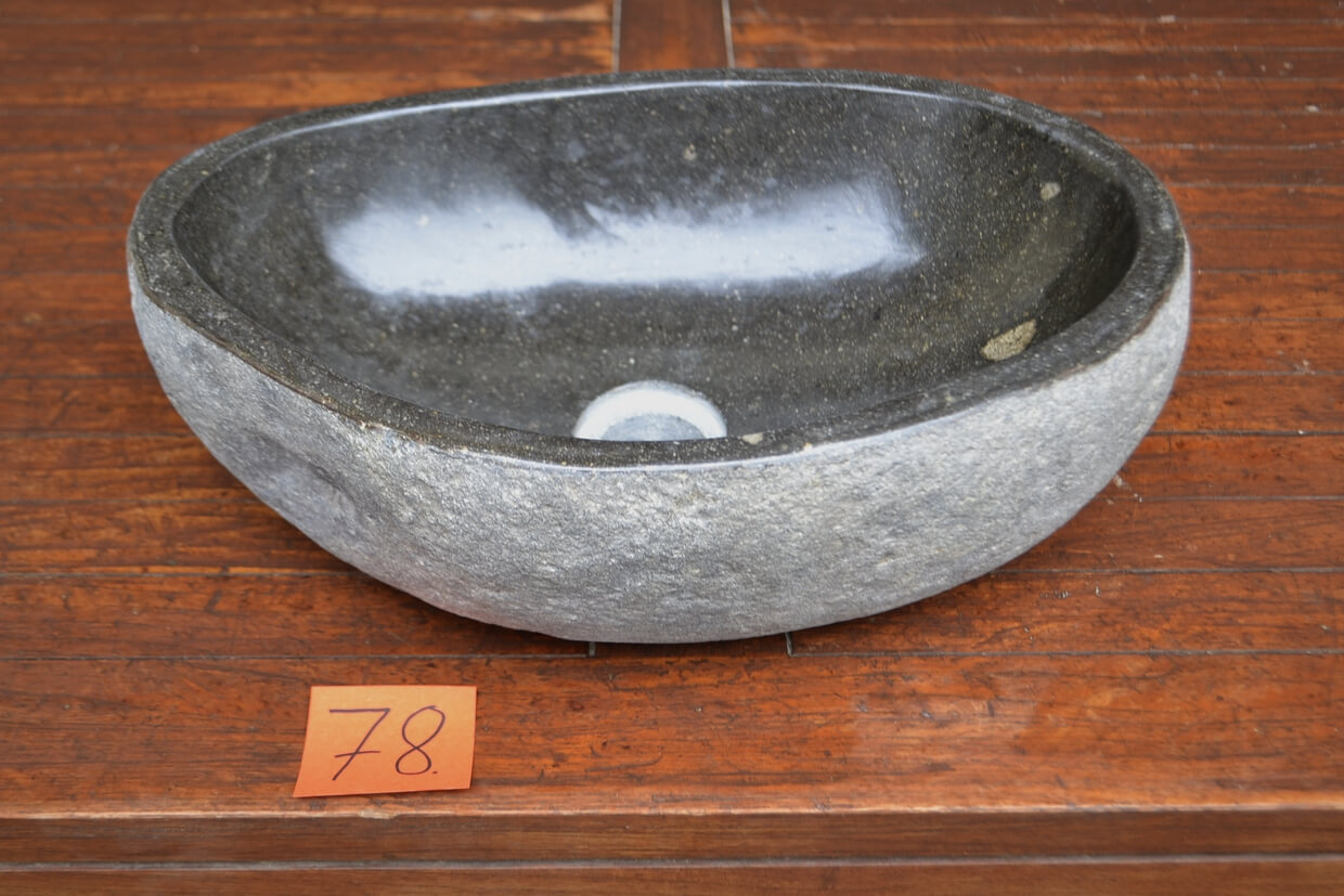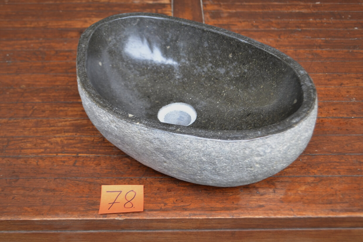 Je nach Größe und Dichte wiegen die Flussstein-Waschbecken zwischen 15 kg und 40 kg.