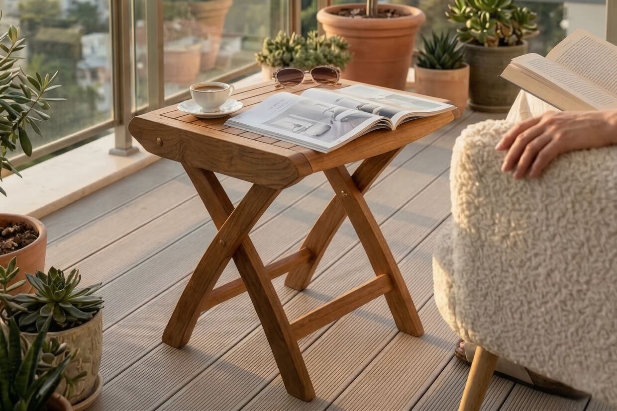 Hochwertiger Fußhocker / Gartenhocker aus Teakholz