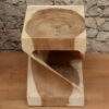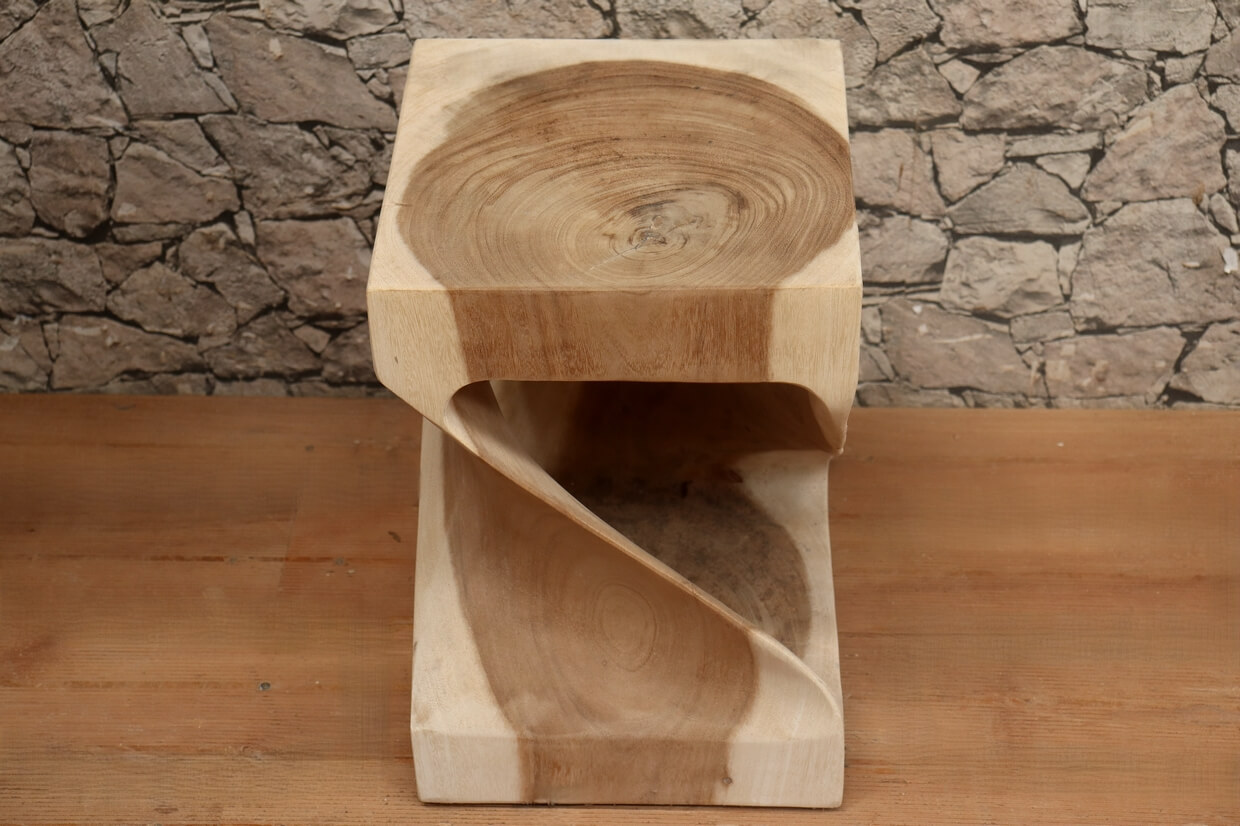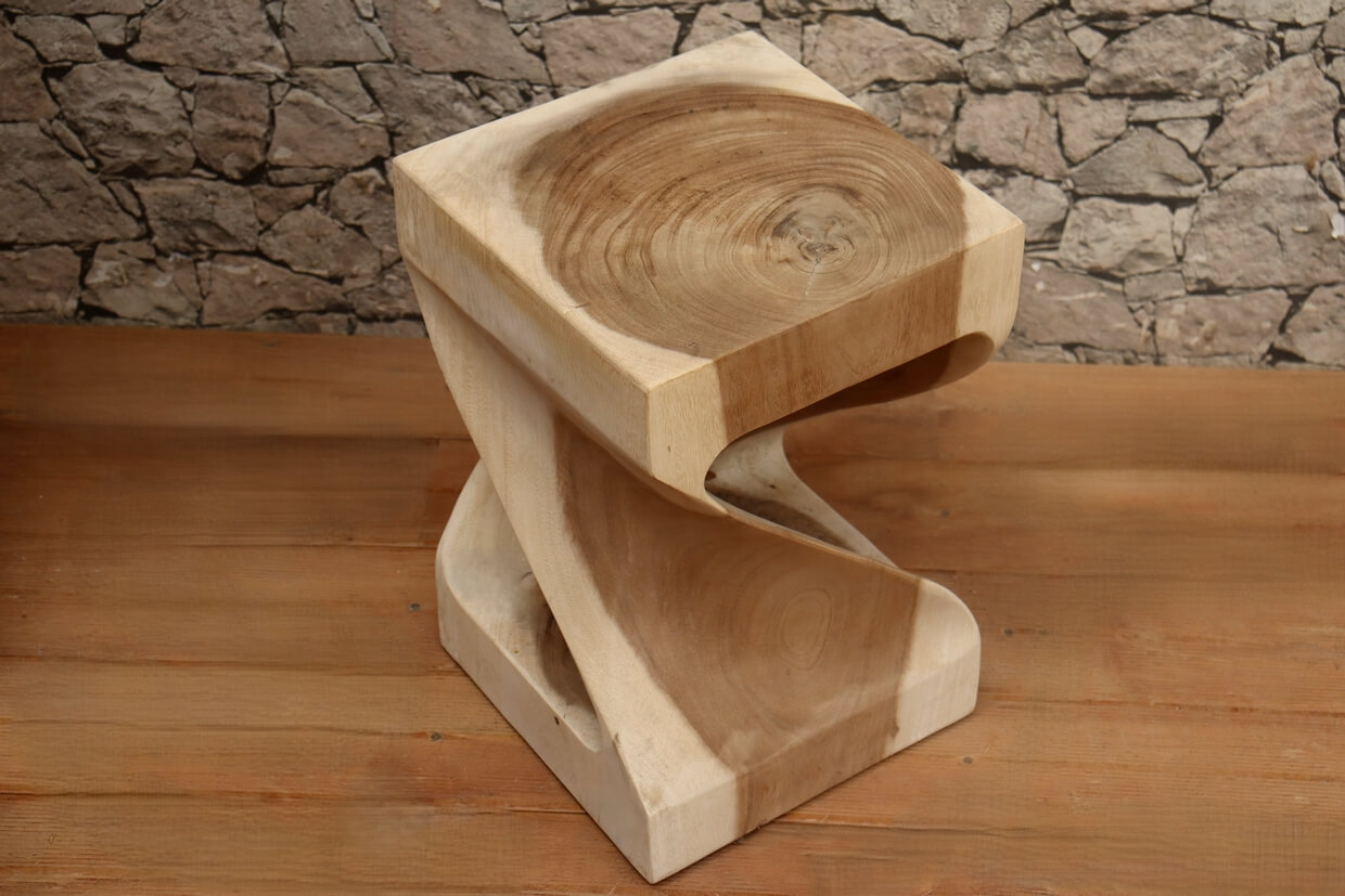 Das Holz der Hocker kann Unebenheiten, Einkerbungen, ehemalige Wurmlöcher und Splintholz (Weißholz) aufweisen.