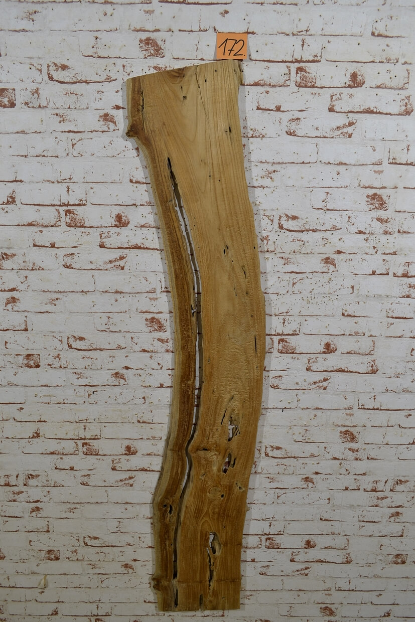 Das Holz kann Unebenheiten, Einkerbungen, ehemalige Wurmlöcher und Splintholz (Weißholz) aufweisen.