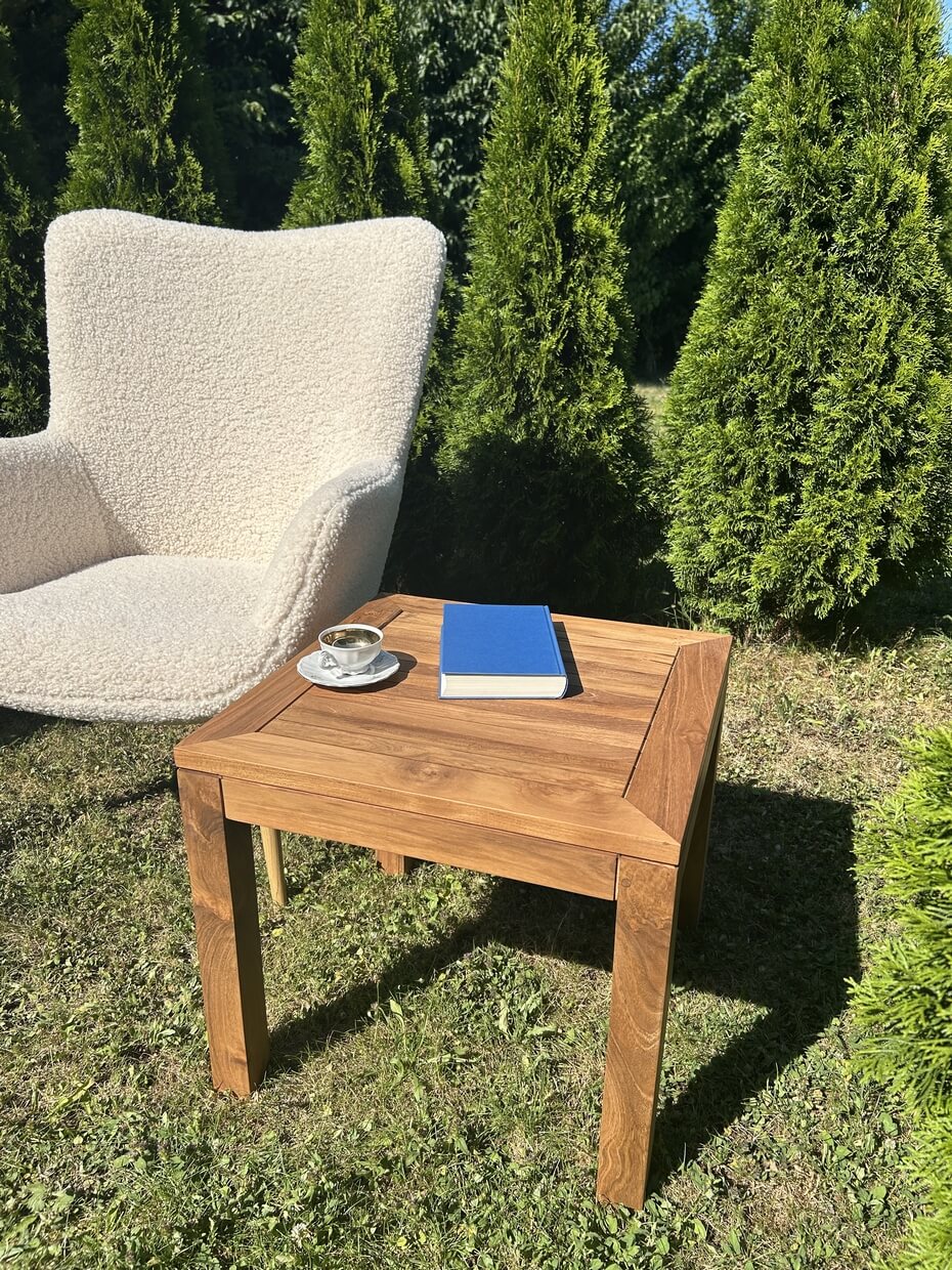 Der Kaffeetisch kann ohne Probleme im freien eingesetzt werden.