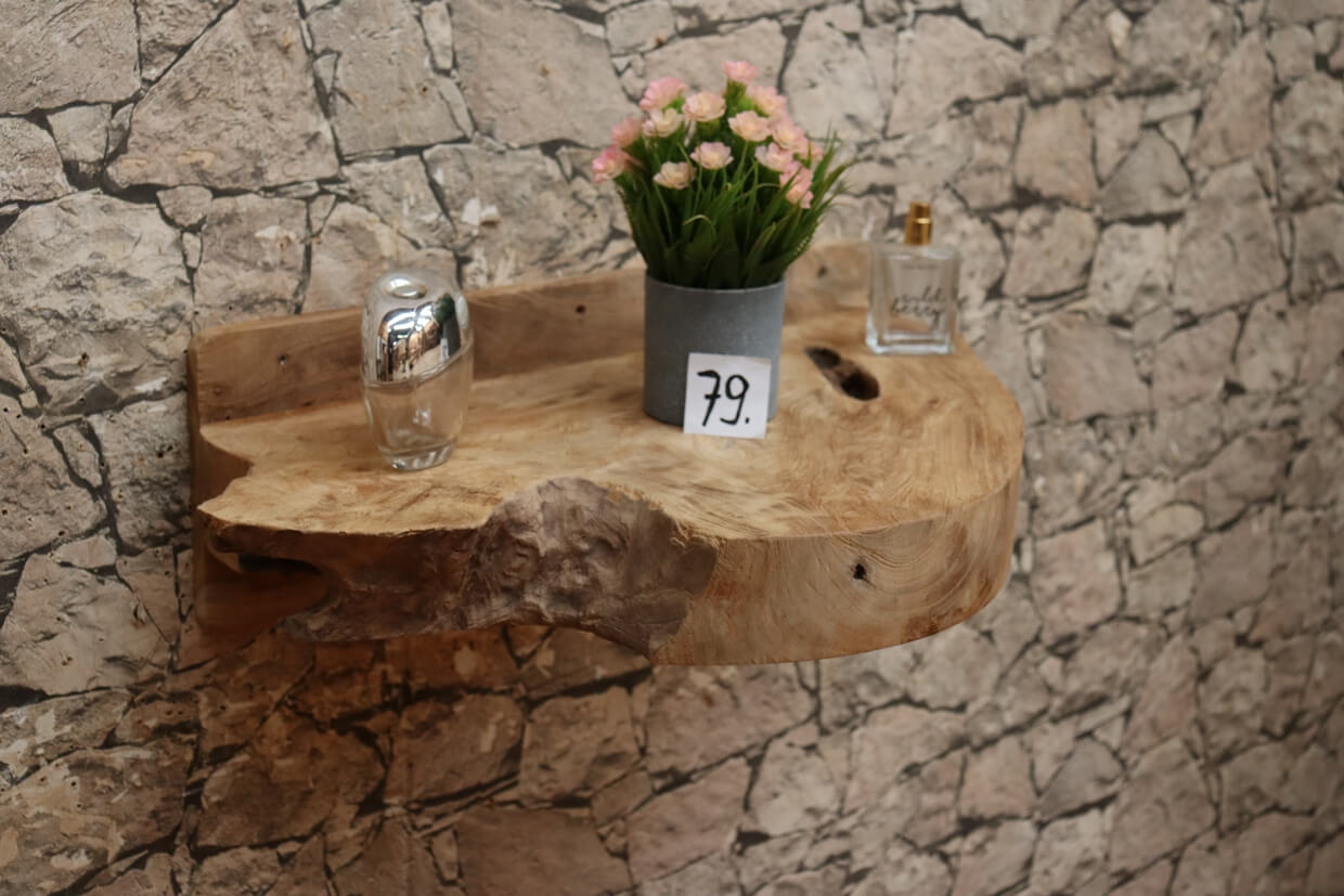 • Die abgebildete Wurzelholz-Konsole wird fertig montiert geliefert.