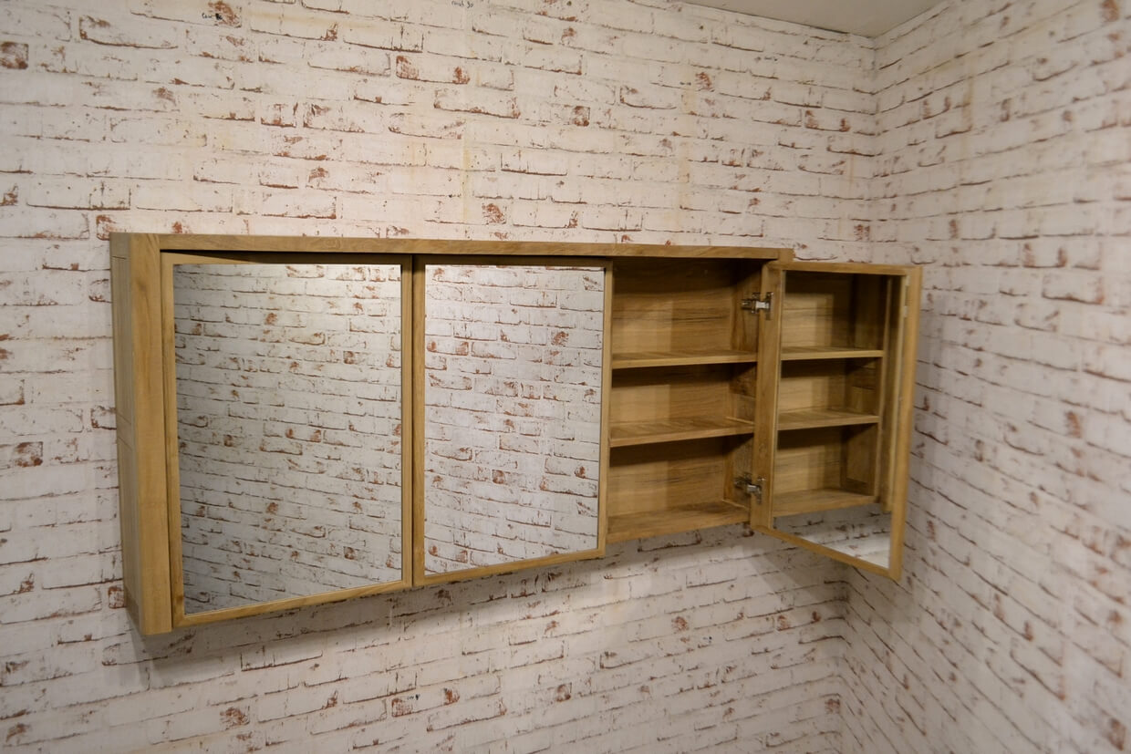 Hochwertiger Spiegelschrank aus massivem Teakholz