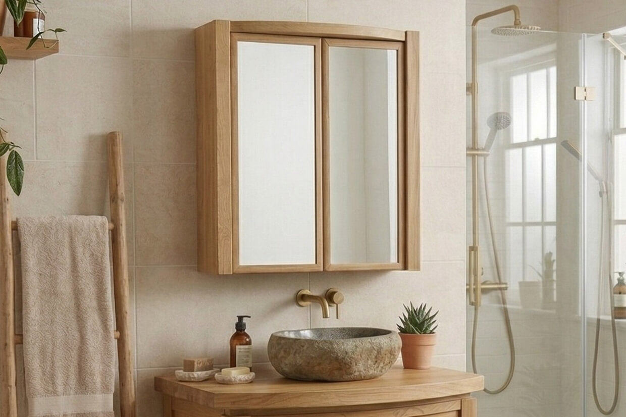 Hochwertiger Spiegelschrank aus massivem Teakholz