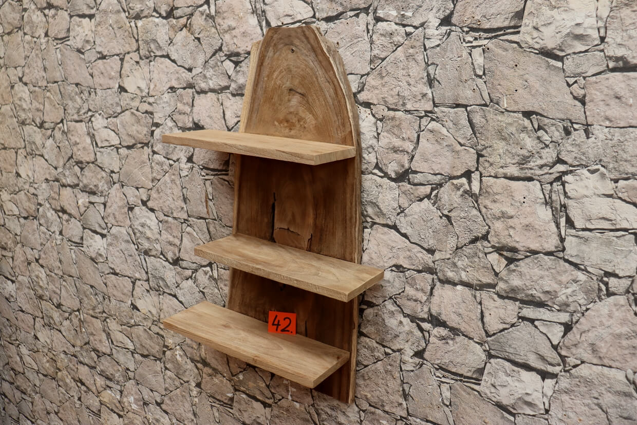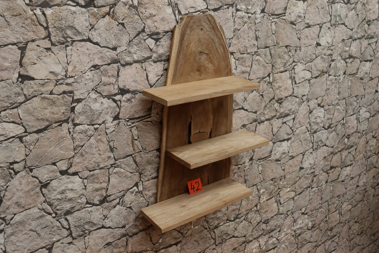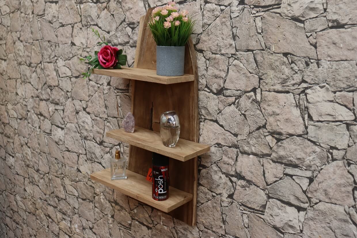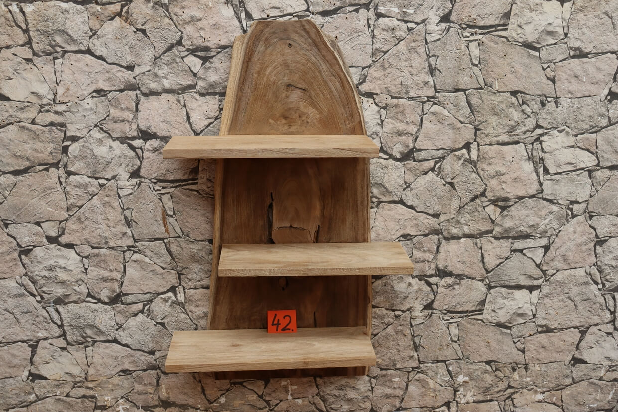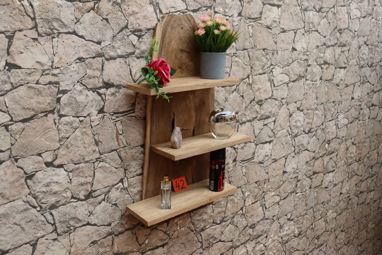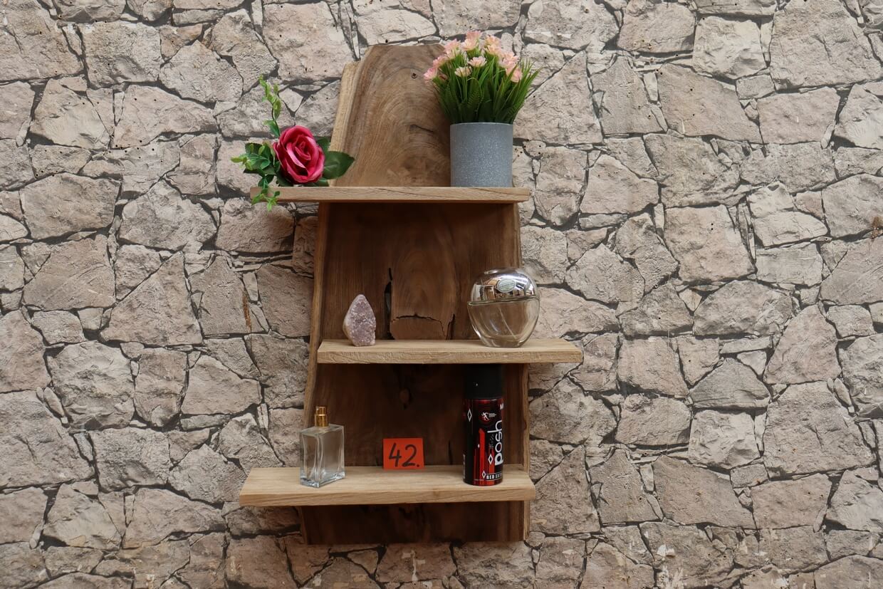Das Wandregal kann Unebenheiten, Einkerbungen, ehemalige Wurmlöcher und Splintholz (Weißholz) aufweisen.