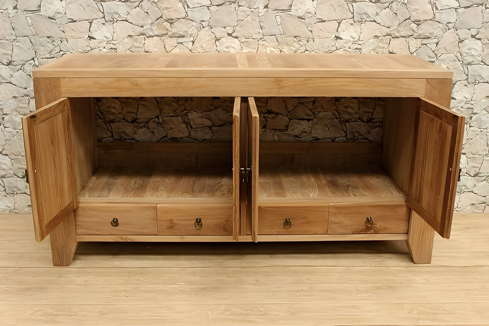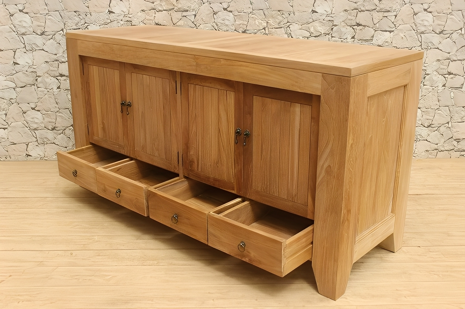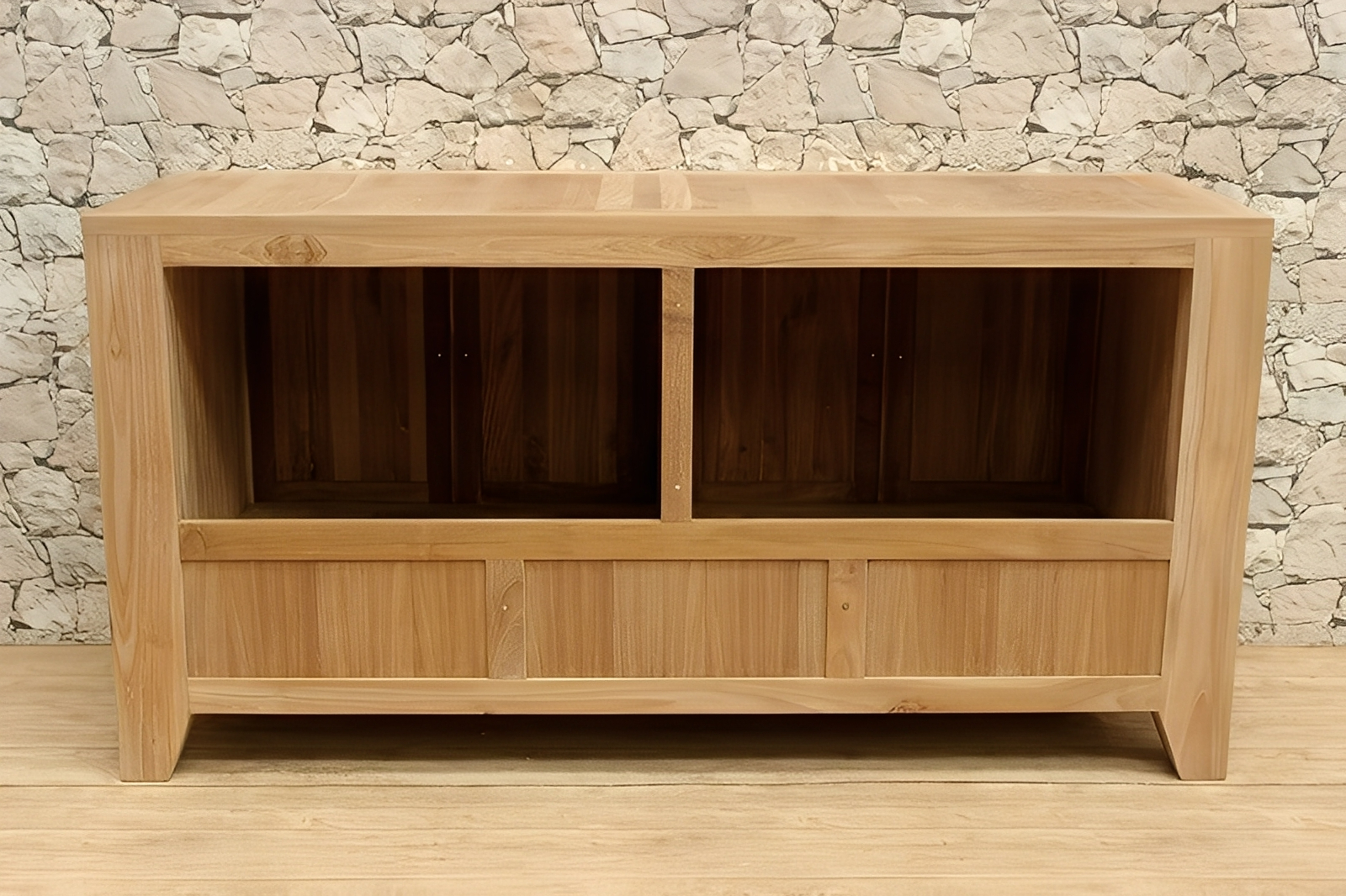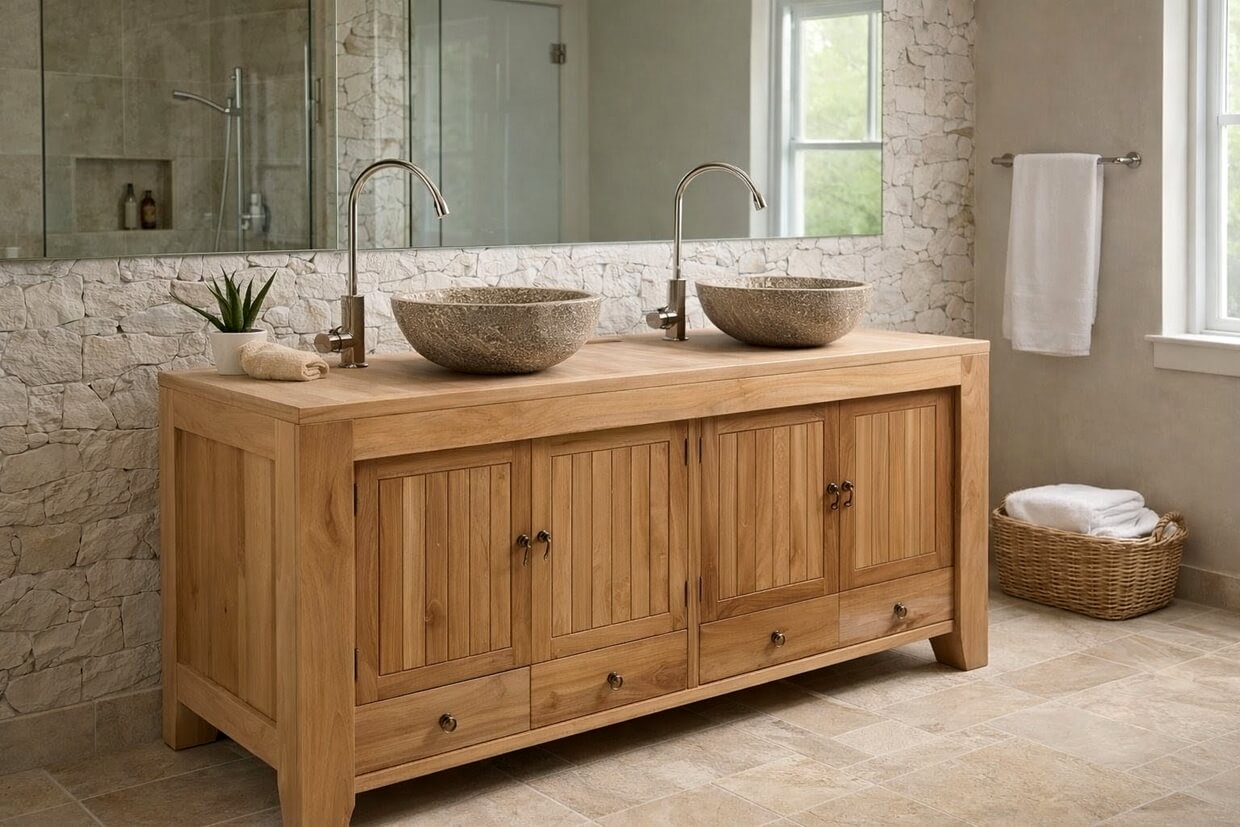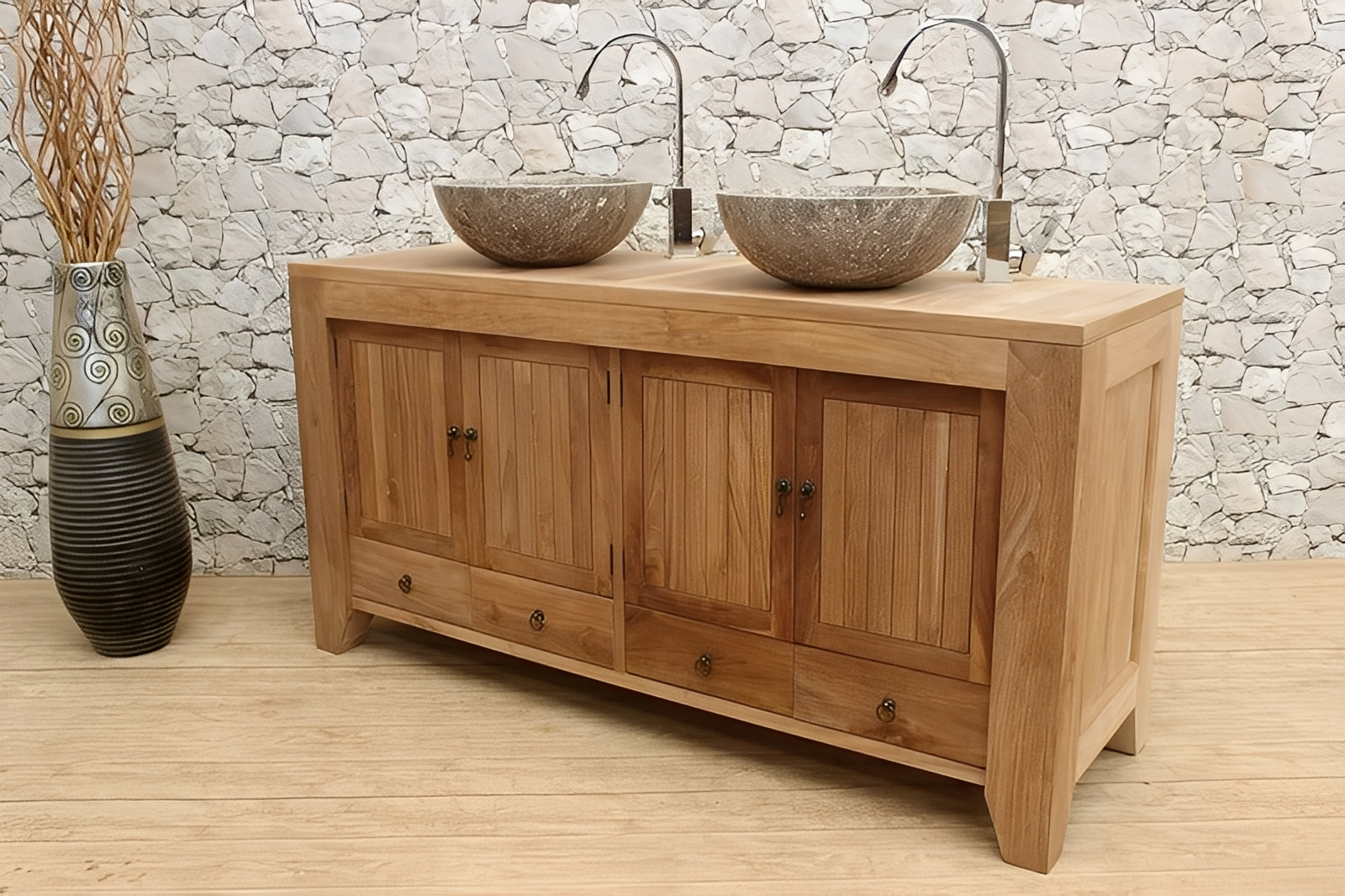 Hochwertig verarbeiteter Waschtisch aus Teakholz
