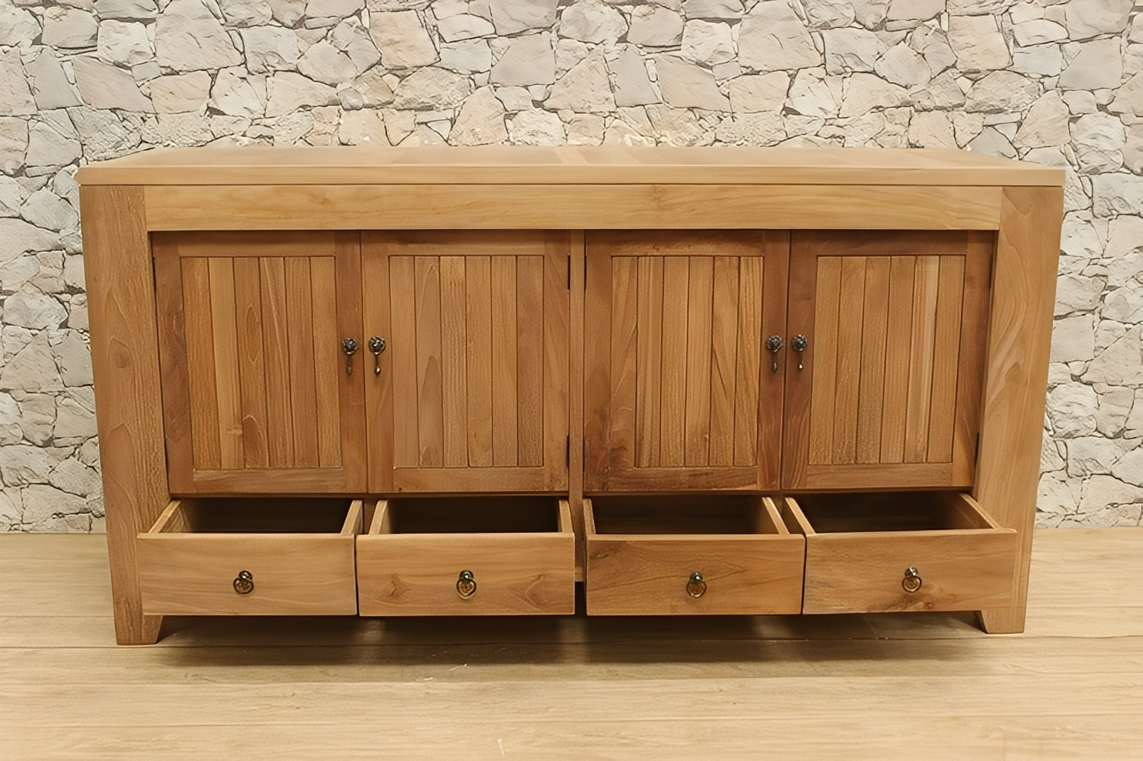 Die Schubladen, sowie die Schubladenböden, sind ebenfalls aus Massivholz.