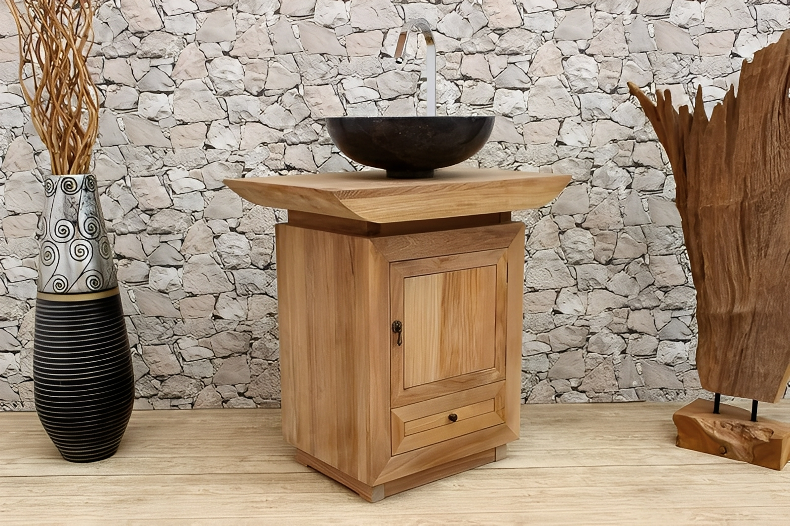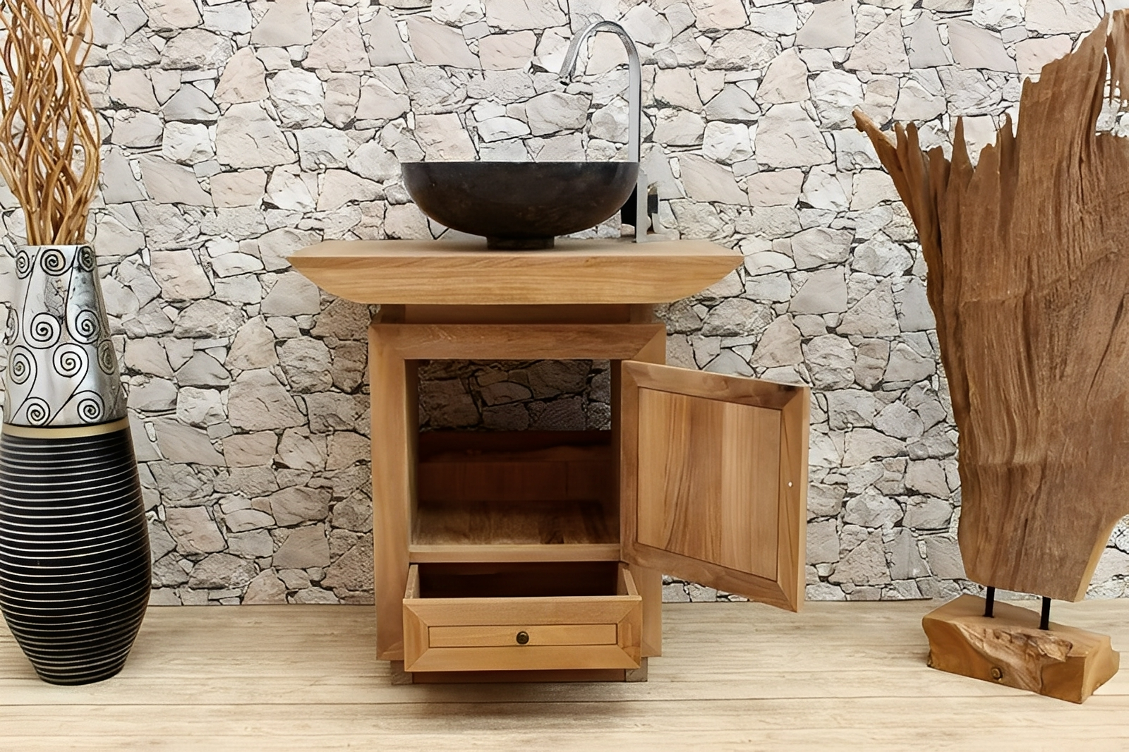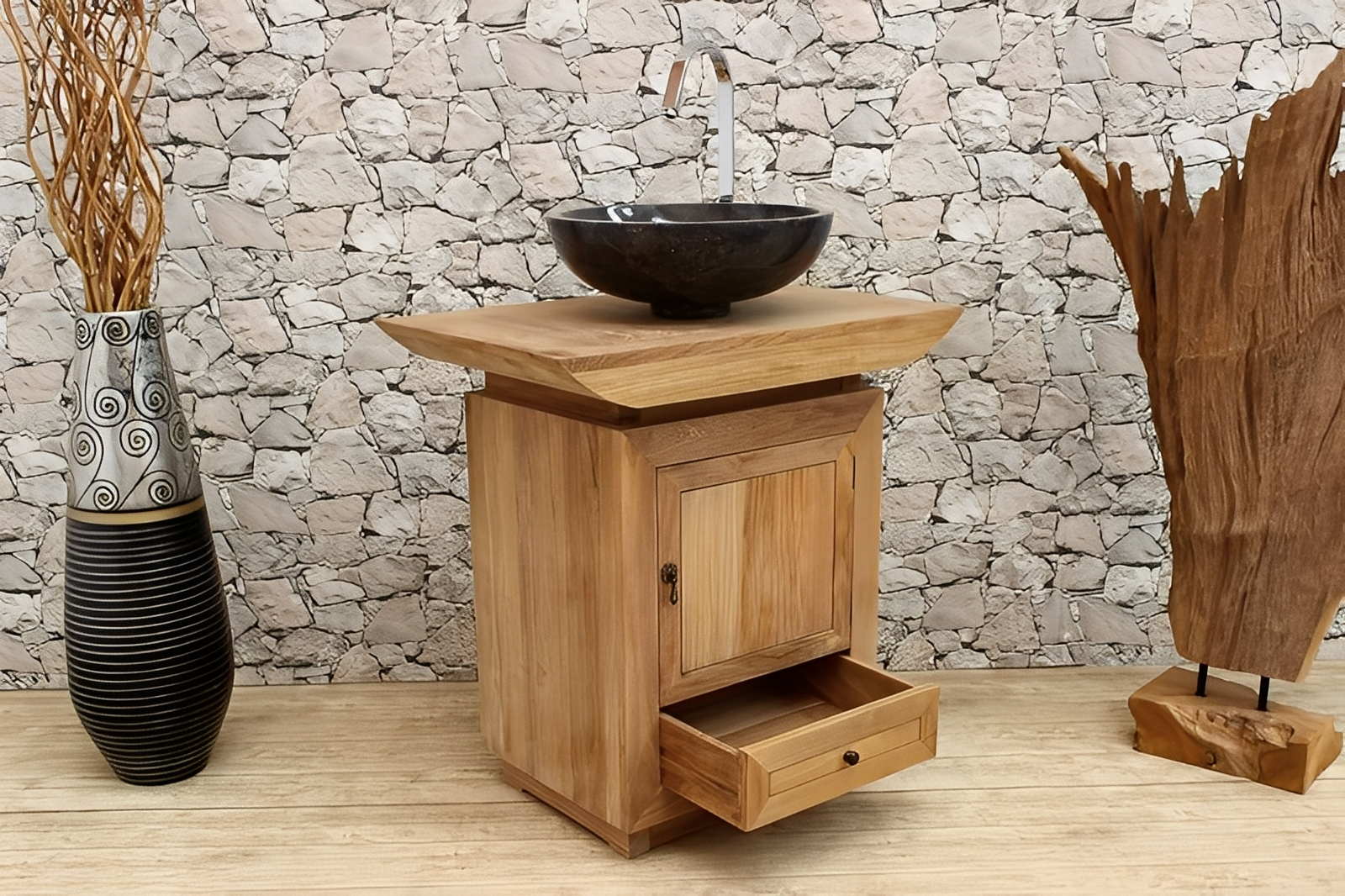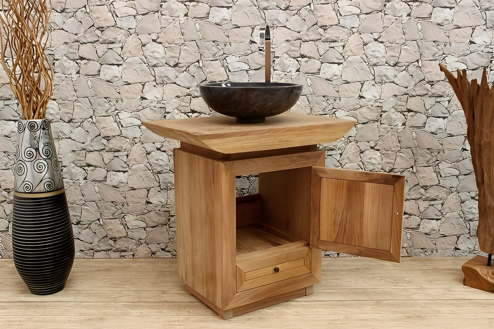 Hochwertig verarbeiteter Waschtisch aus Teakholz