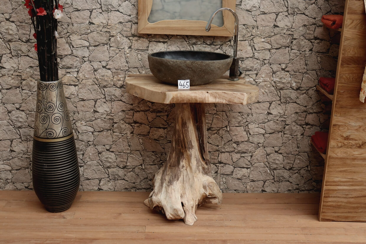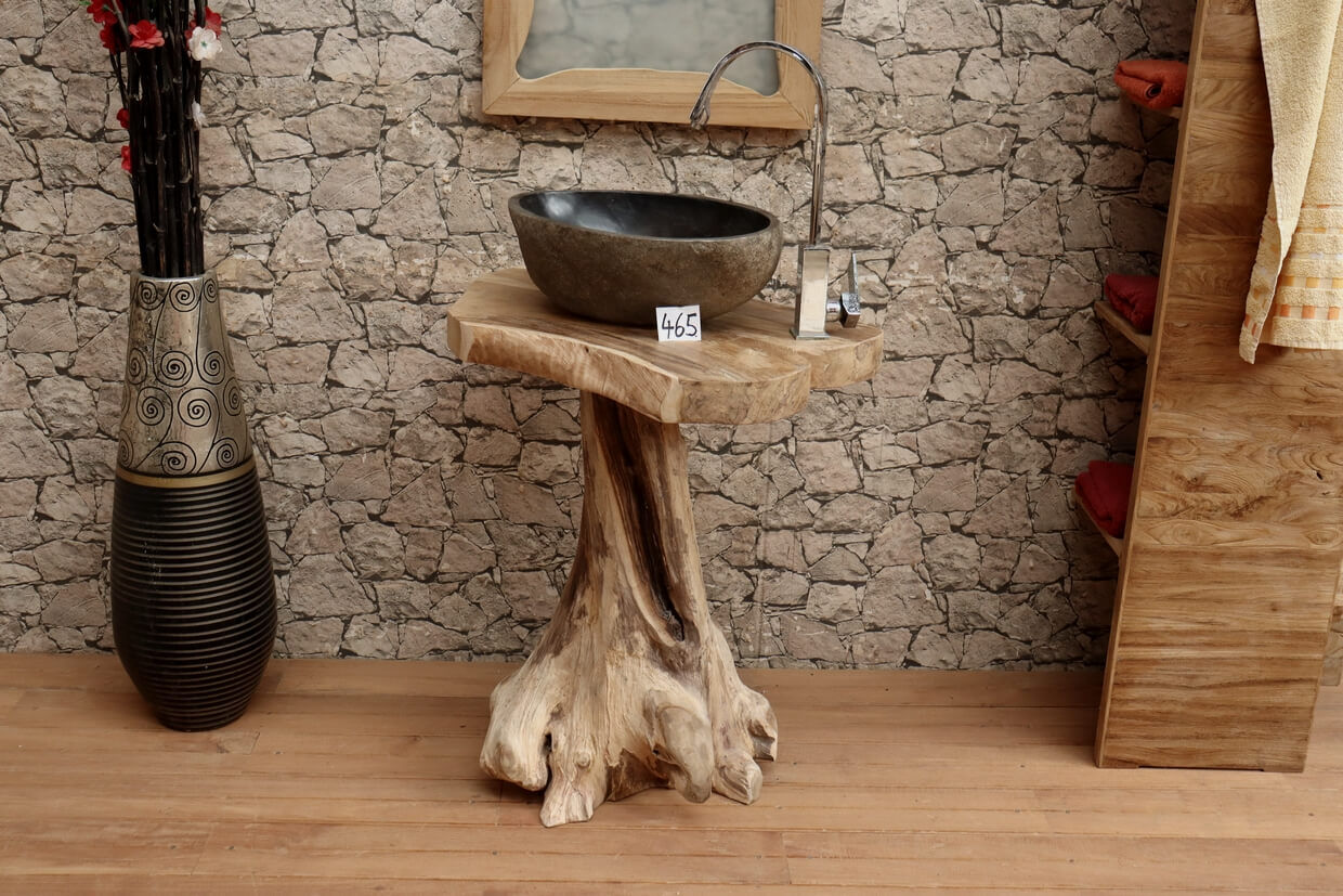 Hochwertiger Wurzelholz-Waschtisch aus Teakholz