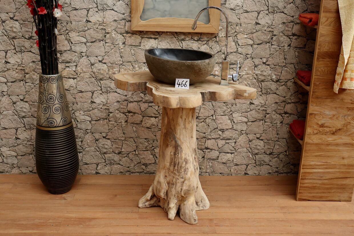 Hochwertiger Wurzelholz-Waschtisch aus Teakholz