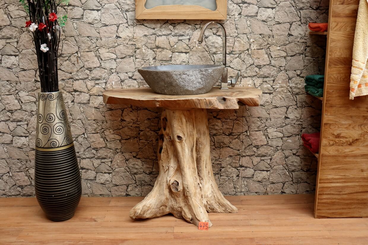 Hochwertiger Wurzelholz-Waschtisch aus Teakholz