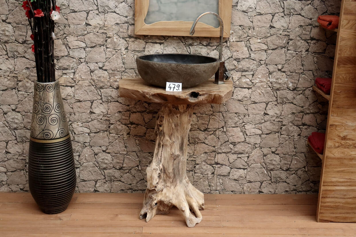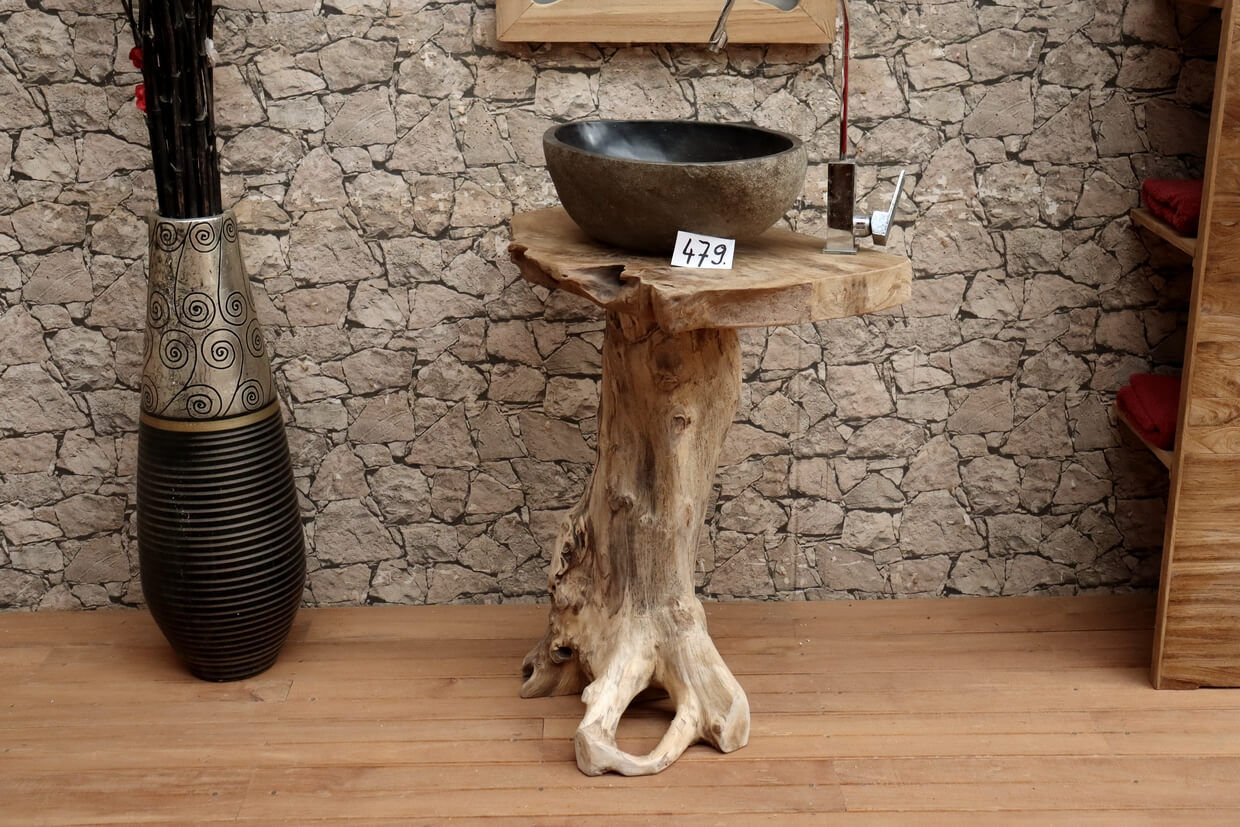 Hochwertiger Wurzelholz-Waschtisch aus Teakholz