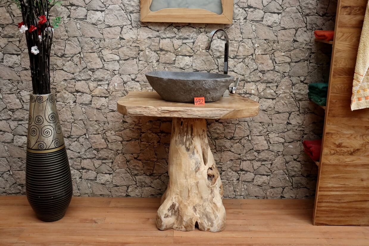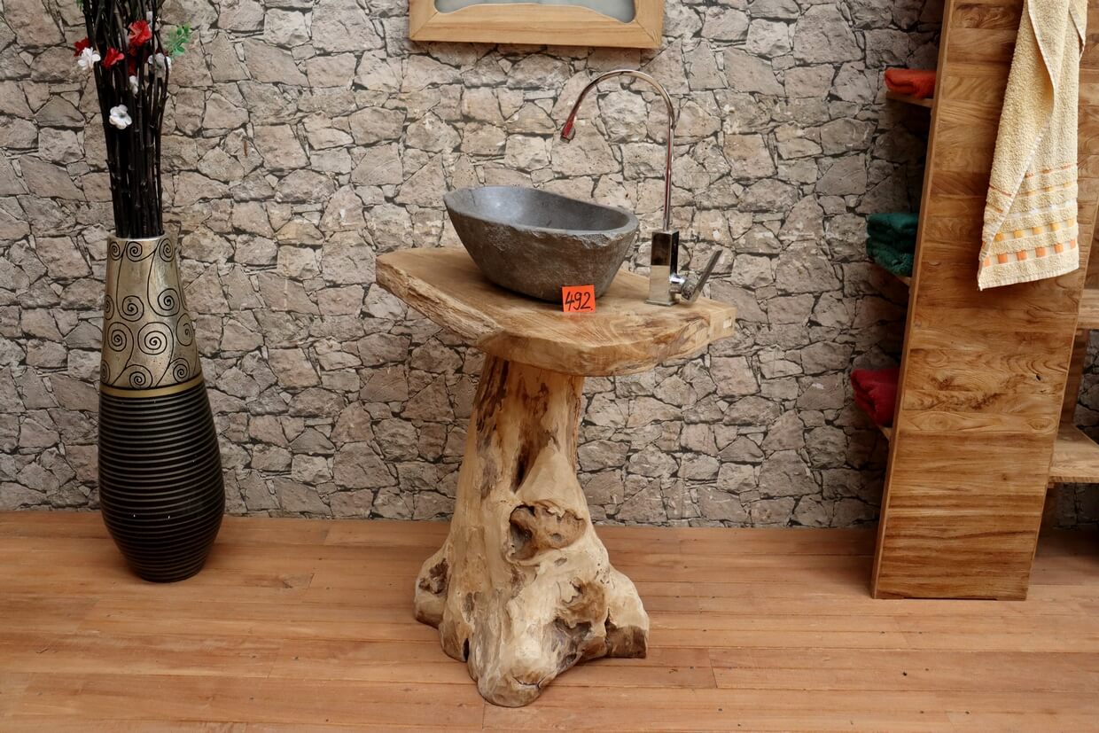 Hochwertiger Wurzelholz-Waschtisch aus Teakholz