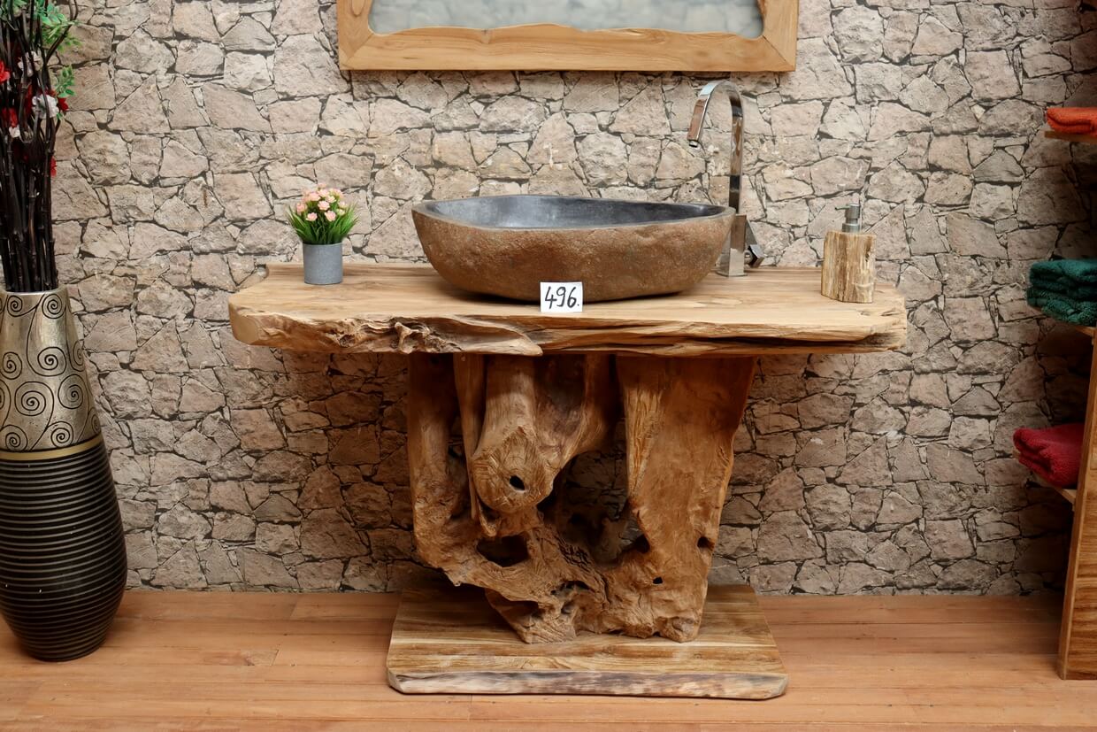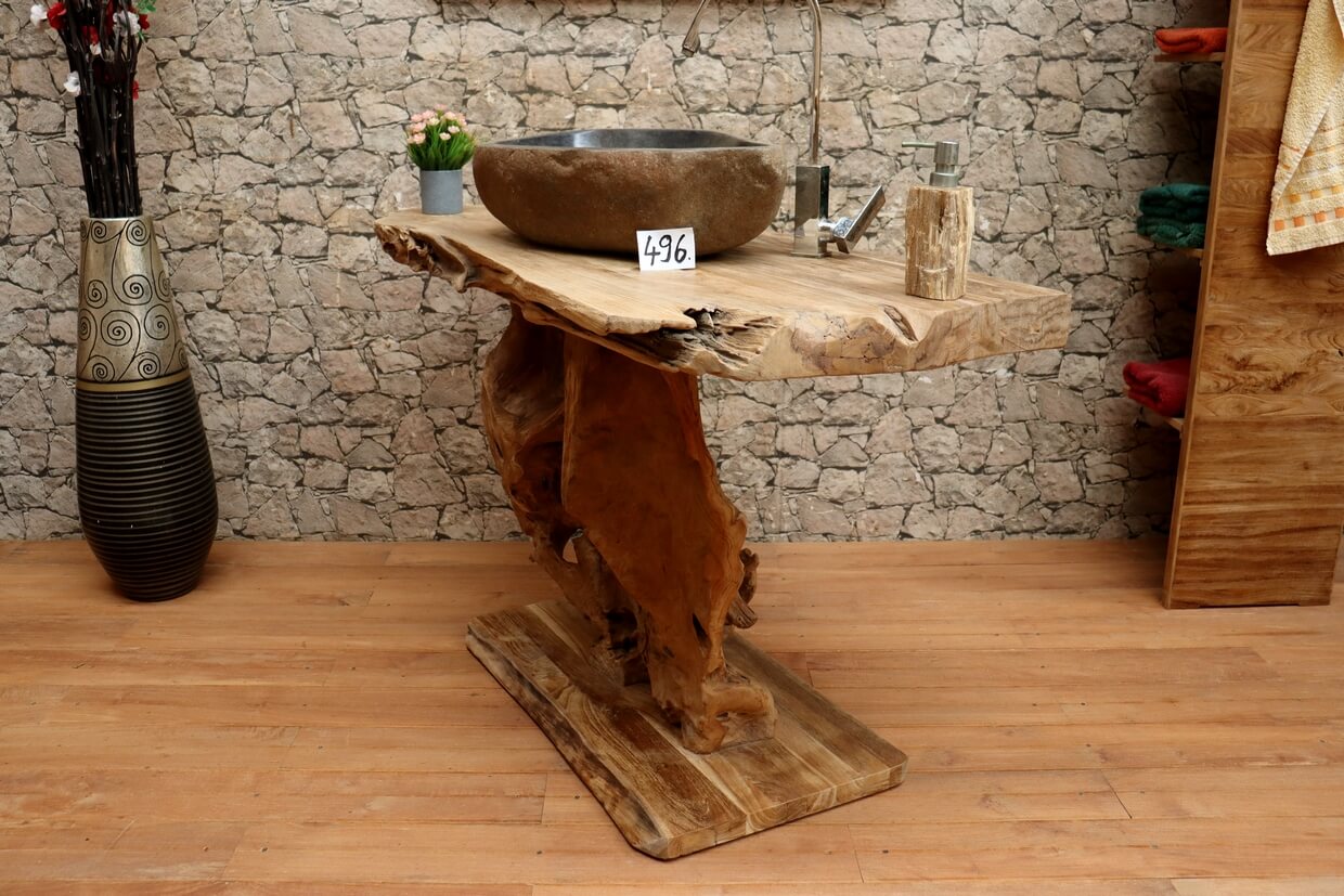 Hochwertiger Wurzelholz-Waschtisch aus Teakholz