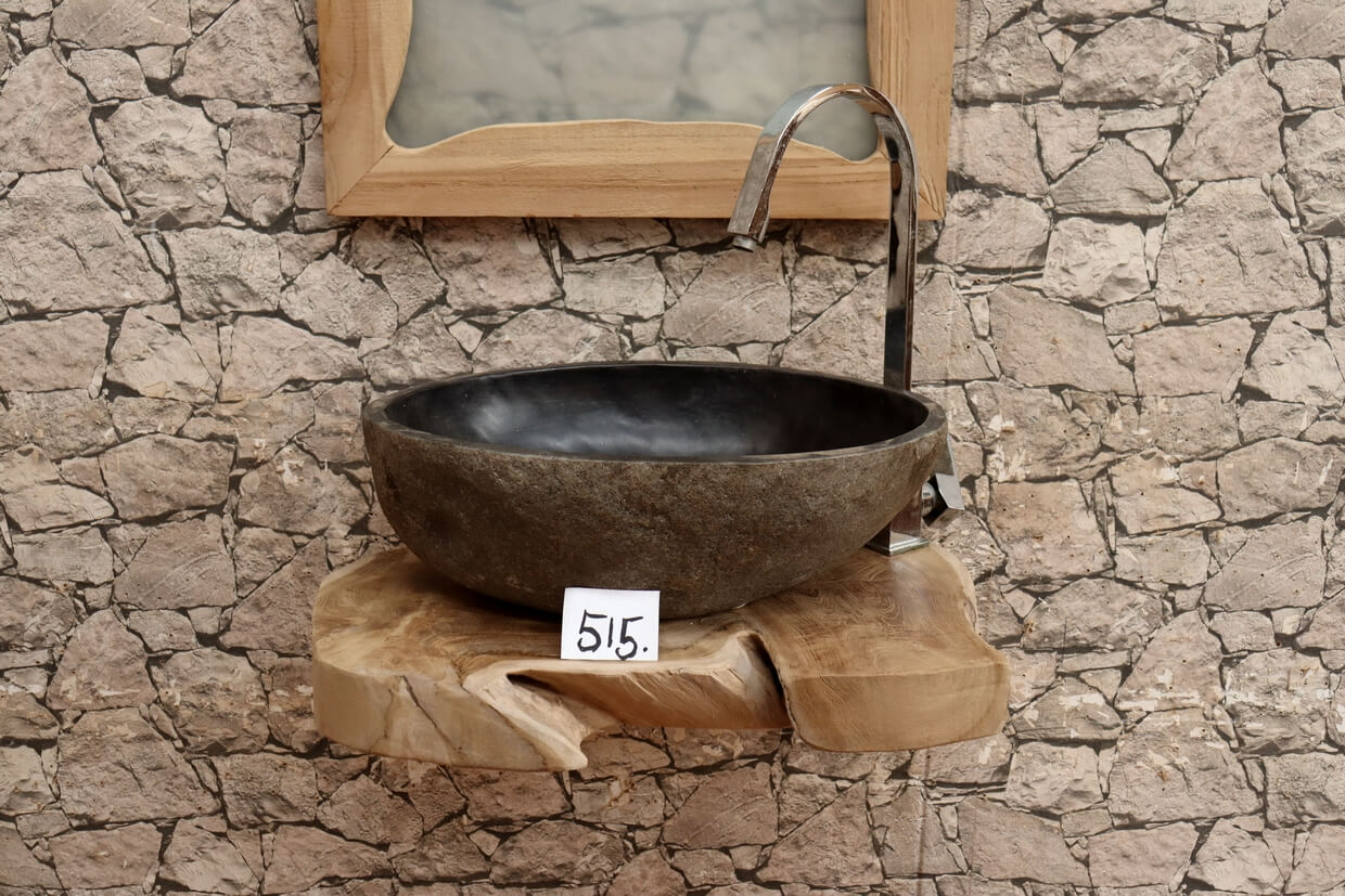 Die Wurzelholz-Waschtischplatten können Unebenheiten, Einkerbungen, ehemalige Wurmlöcher und Splintholz (Weißholz) aufweisen.