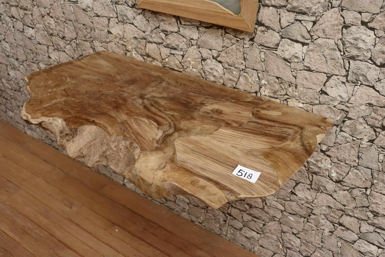 Hochwertige Wurzelholz-Waschtischplatte aus Teakholz